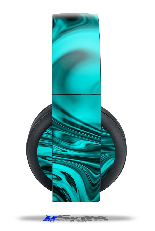 Vinyl Decal Skin Wrap compatible with Original Sony PlayStation 4 Gold Wireless Headphones Liquid Metal Chrome Neon Teal (PS4 HEADPHONES NOT INCLUDED)