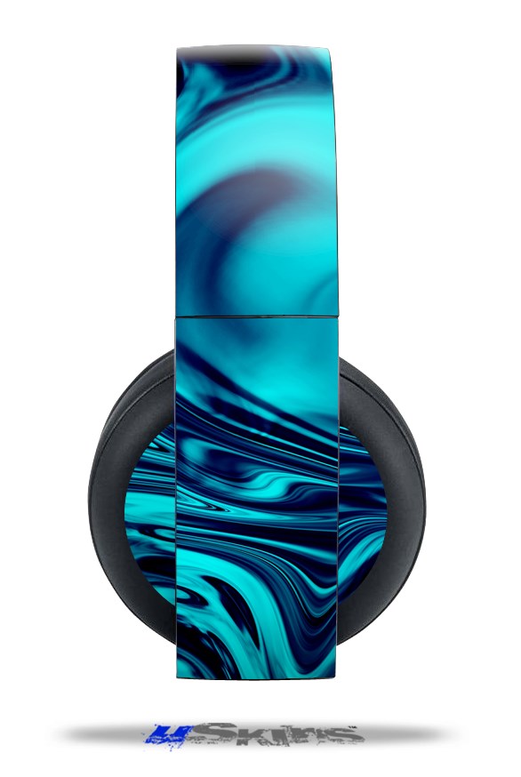 Vinyl Decal Skin Wrap compatible with Original Sony PlayStation 4 Gold Wireless Headphones Liquid Metal Chrome Neon Blue (PS4 HEADPHONES NOT INCLUDED)