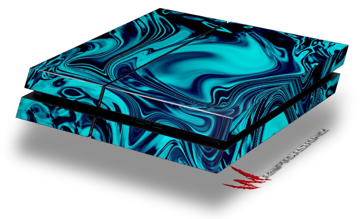 Vinyl Decal Skin Wrap compatible with Sony PlayStation 4 Original Console Liquid Metal Chrome Neon Blue (PS4 NOT INCLUDED)