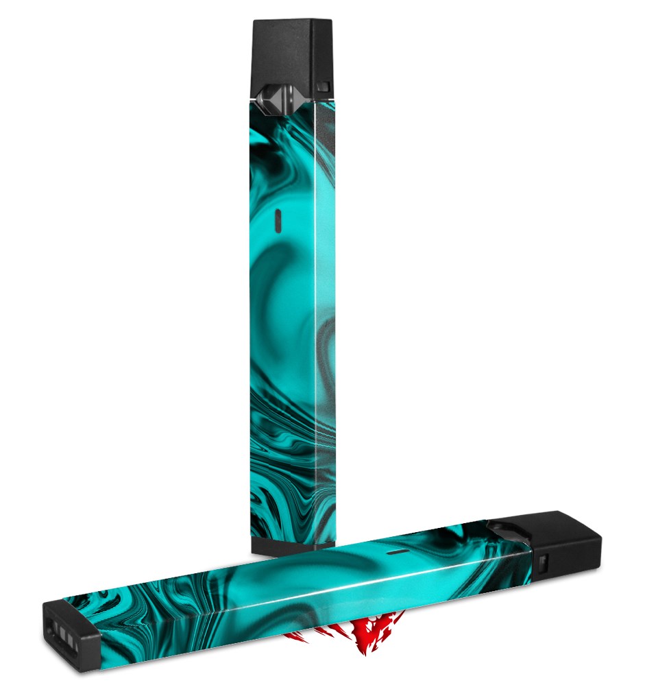 Skin Decal Wrap 2 Pack compatible with Juul Vapes Liquid Metal Chrome Neon Teal JUUL NOT INCLUDED