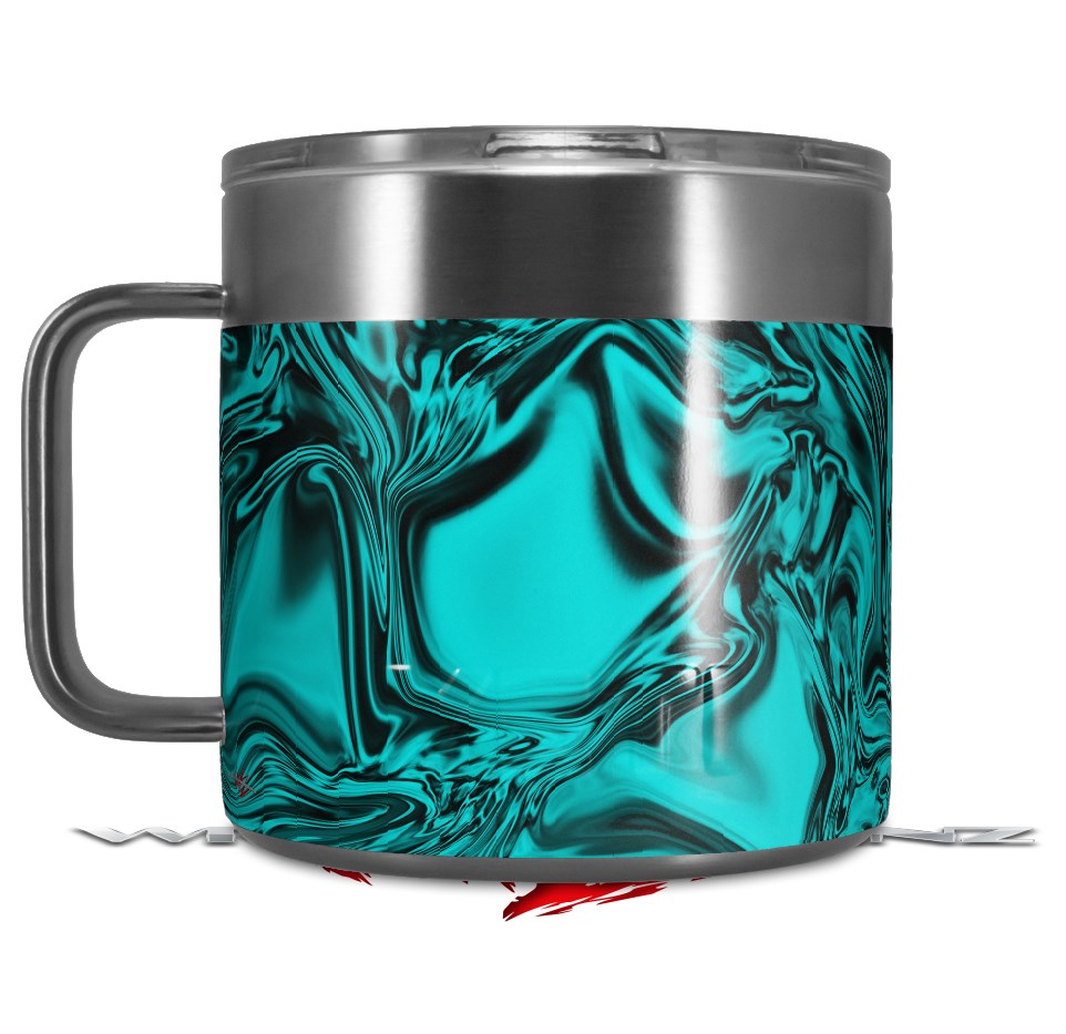 Skin Decal Wrap compatible with Yeti Coffee Mug 14oz Liquid Metal Chrome Neon Teal - 14 oz CUP NOT INCLUDED by WraptorSkinz