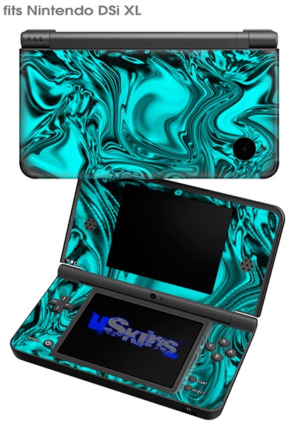 Liquid Metal Chrome Neon Teal - Decal Style Skin compatible with Nintendo DSi XL (DSi SOLD SEPARATELY)