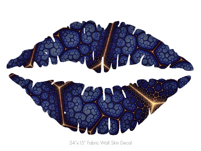Linear Cosmos Blue - Kissing Lips Fabric Wall Skin Decal measures 24x15 inches