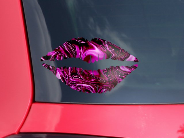 Lips Decal 9x5.5 Liquid Metal Chrome Hot Pink Fuchsia