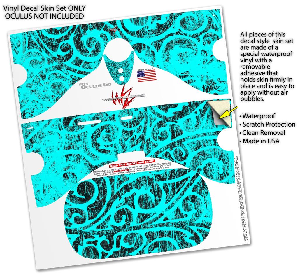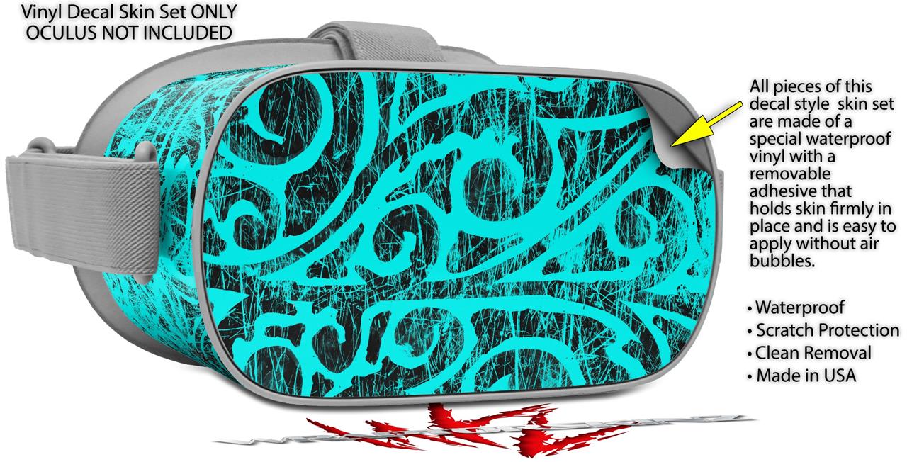 Decal style Skin Wrap compatible with Oculus Go Headset - Folder Doodles Neon Teal (OCULUS NOT INCLUDED)