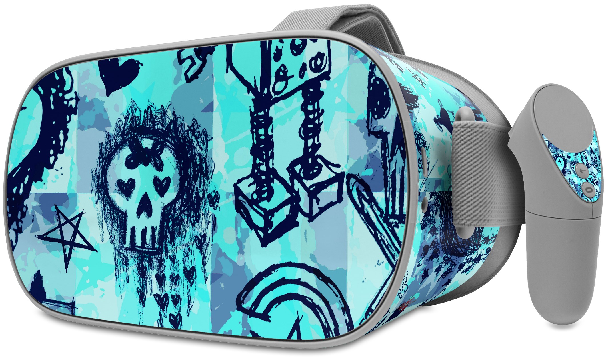 Decal style Skin Wrap compatible with Oculus Go Headset - Scene Kid Sketches Blue (OCULUS NOT INCLUDED)