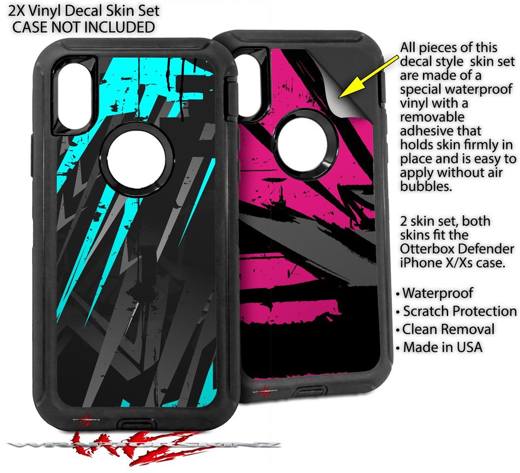 2x Decal style Skin Wrap Set compatible with Otterbox Defender iPhone X and Xs Case - Baja 0014 Neon Teal (CASE NOT INCLUDED)