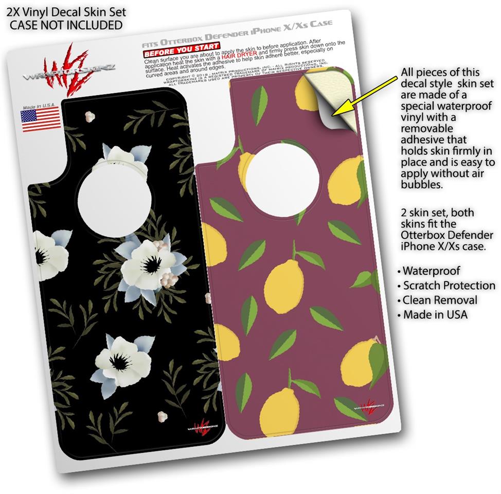 2x Decal style Skin Wrap Set compatible with Otterbox Defender iPhone X and Xs Case - Poppy Dark (CASE NOT INCLUDED)