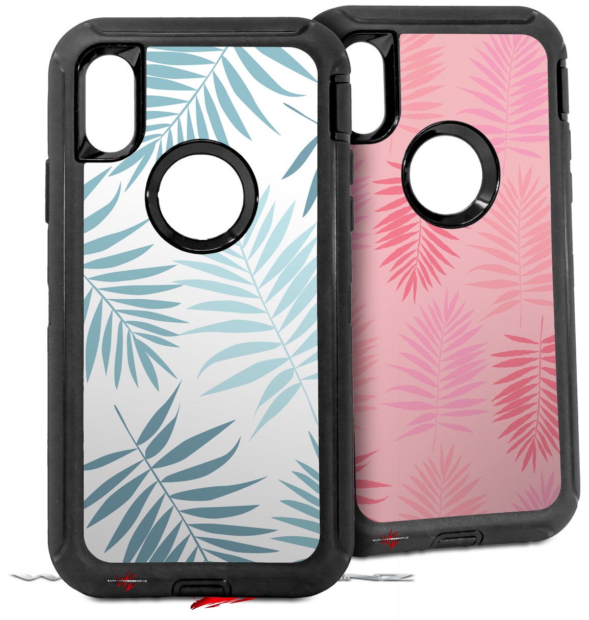 2x Decal style Skin Wrap Set compatible with Otterbox Defender iPhone X and Xs Case - Palms 02 Blue (CASE NOT INCLUDED)