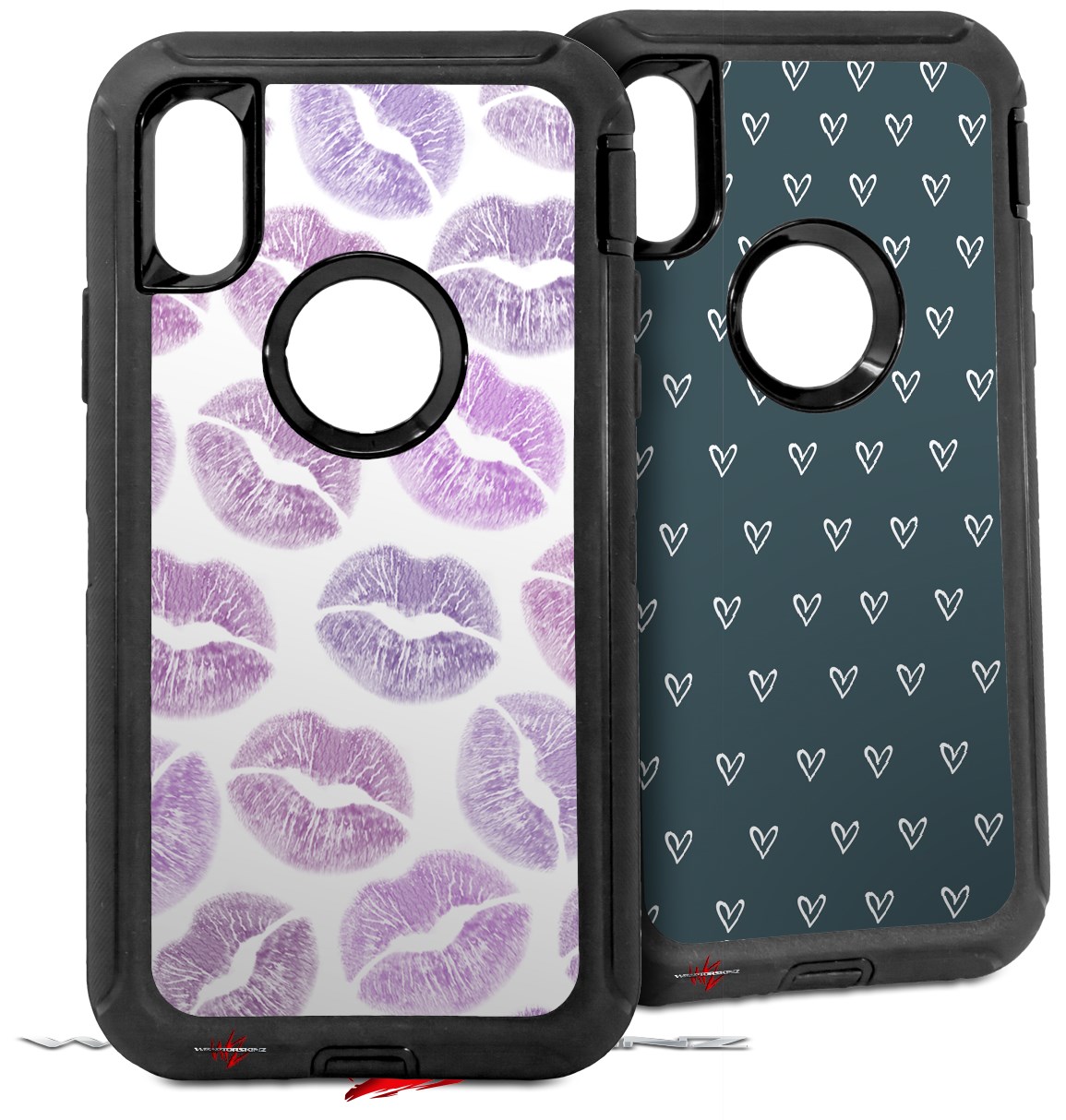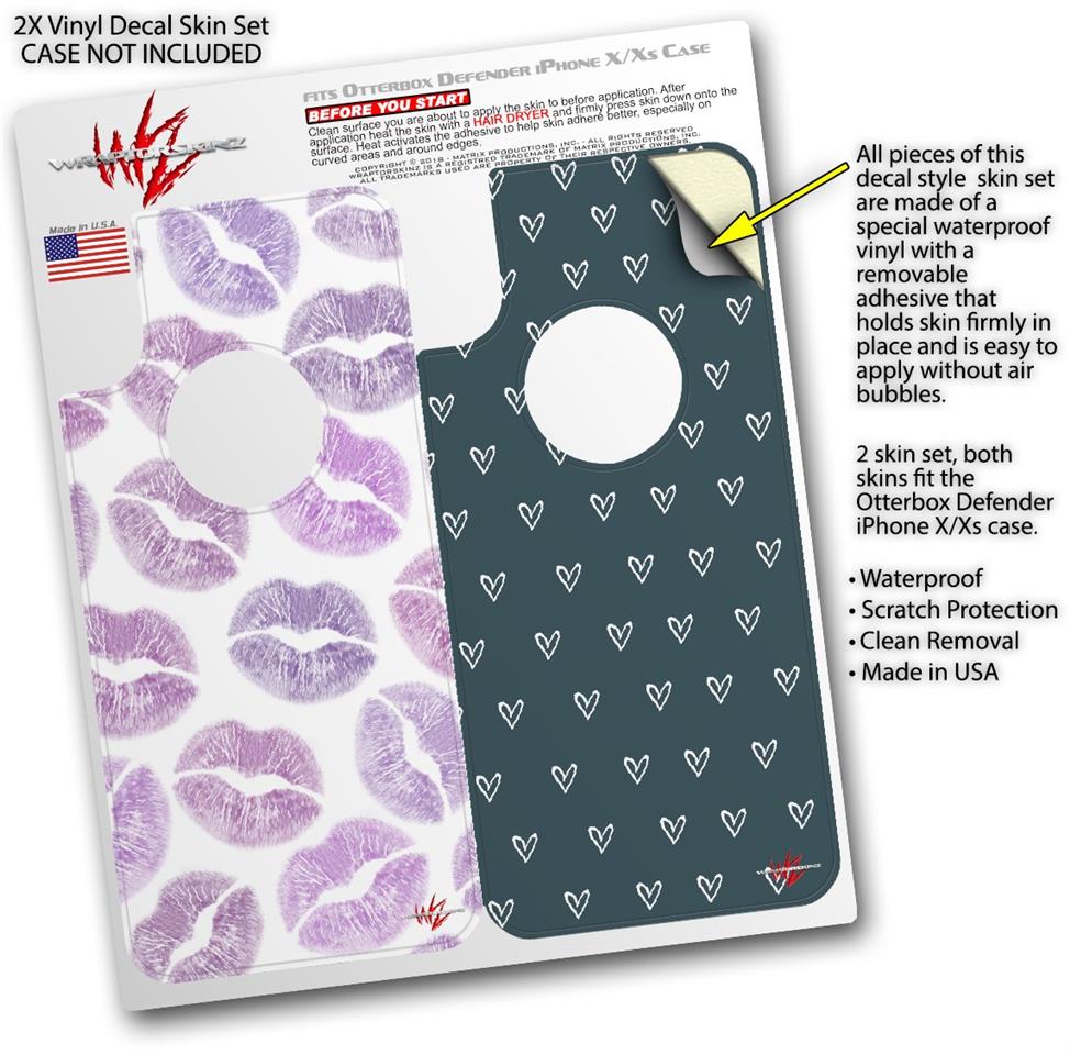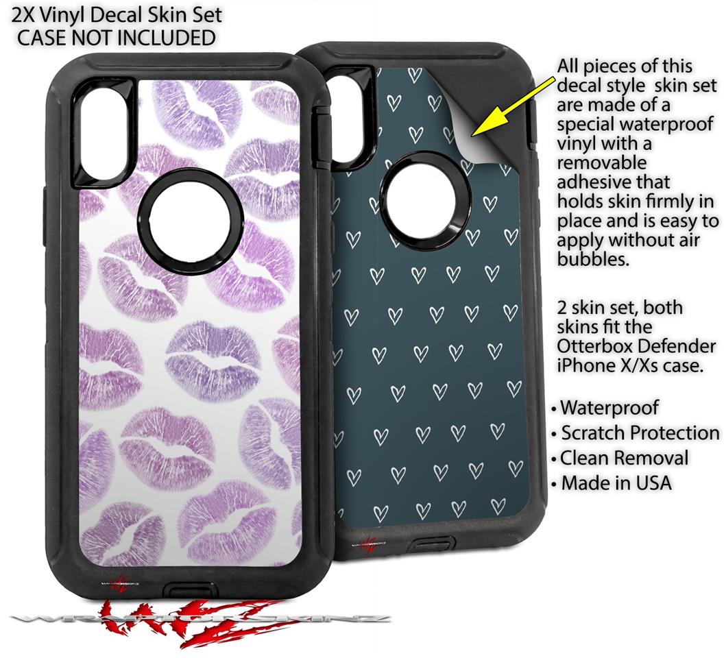 2x Decal style Skin Wrap Set compatible with Otterbox Defender iPhone X and Xs Case - Purple Lips (CASE NOT INCLUDED)