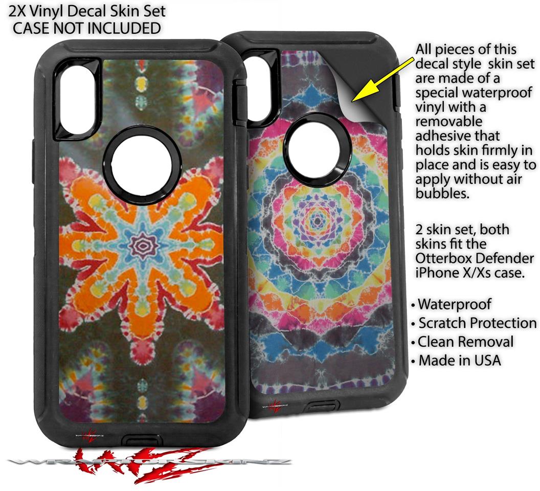 2x Decal style Skin Wrap Set compatible with Otterbox Defender iPhone X and Xs Case - Tie Dye Star 103 (CASE NOT INCLUDED)
