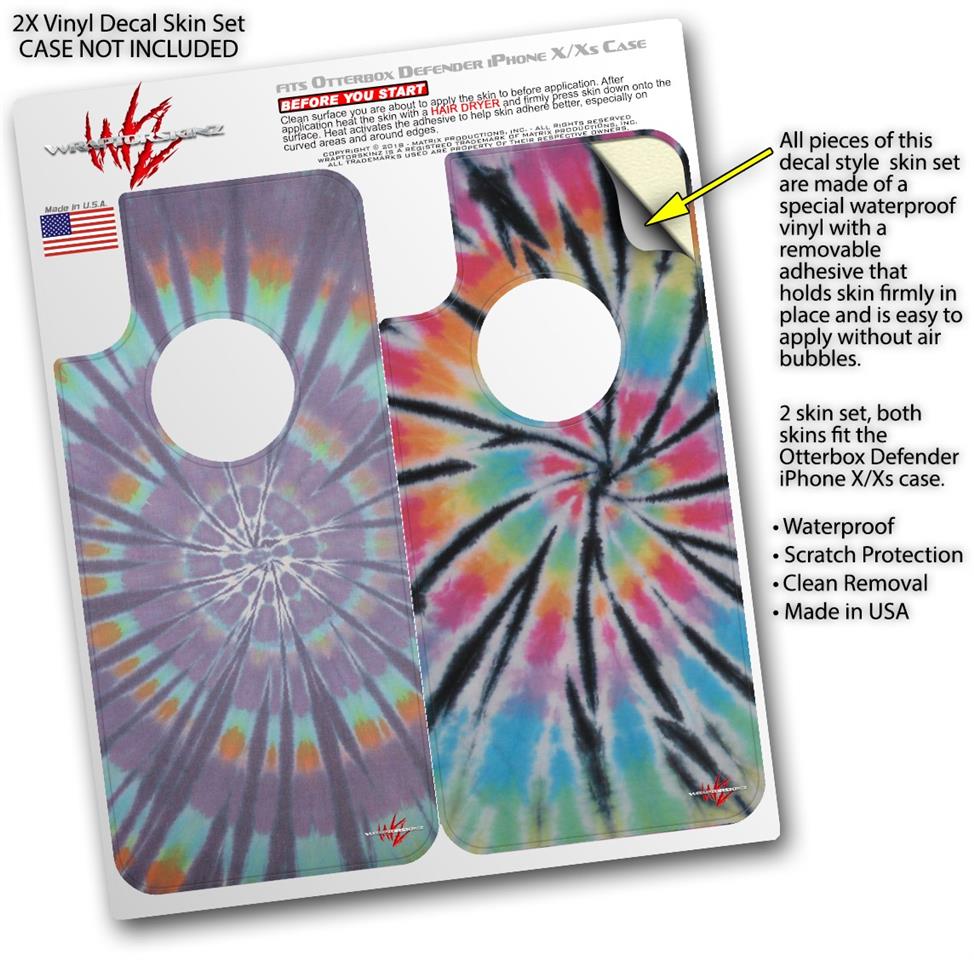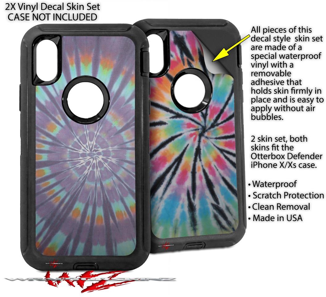 2x Decal style Skin Wrap Set compatible with Otterbox Defender iPhone X and Xs Case - Tie Dye Swirl 103 (CASE NOT INCLUDED)