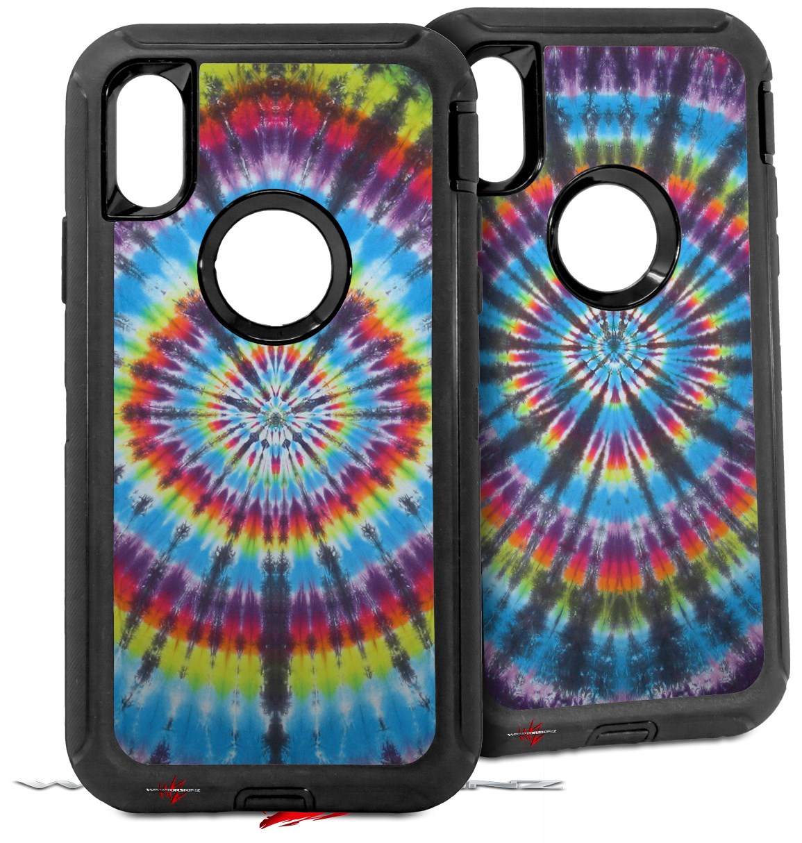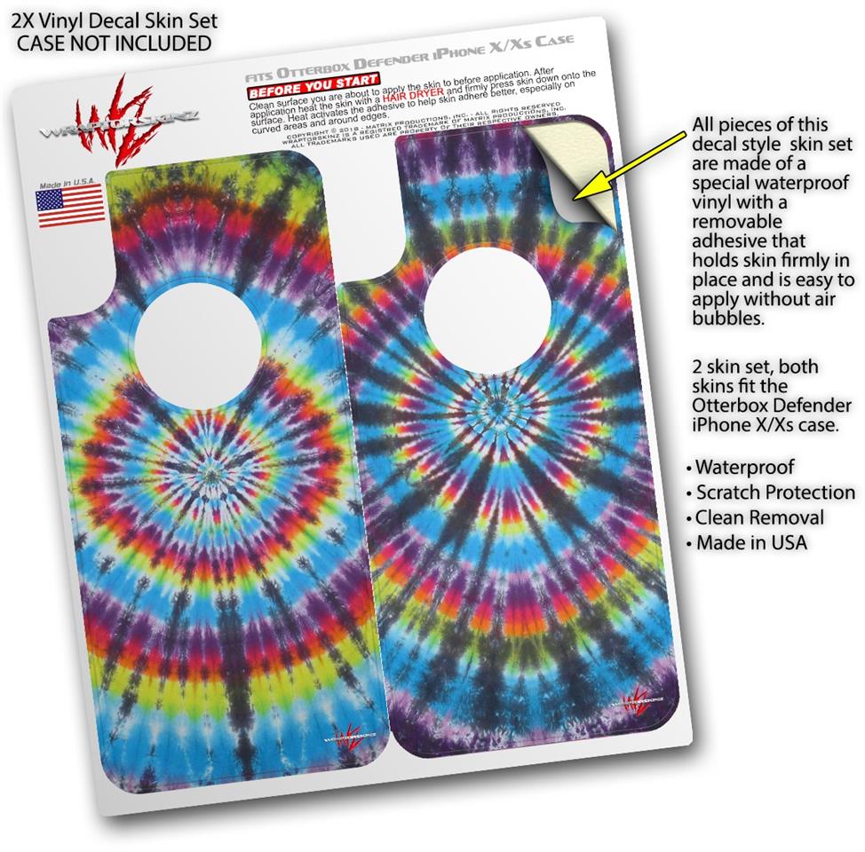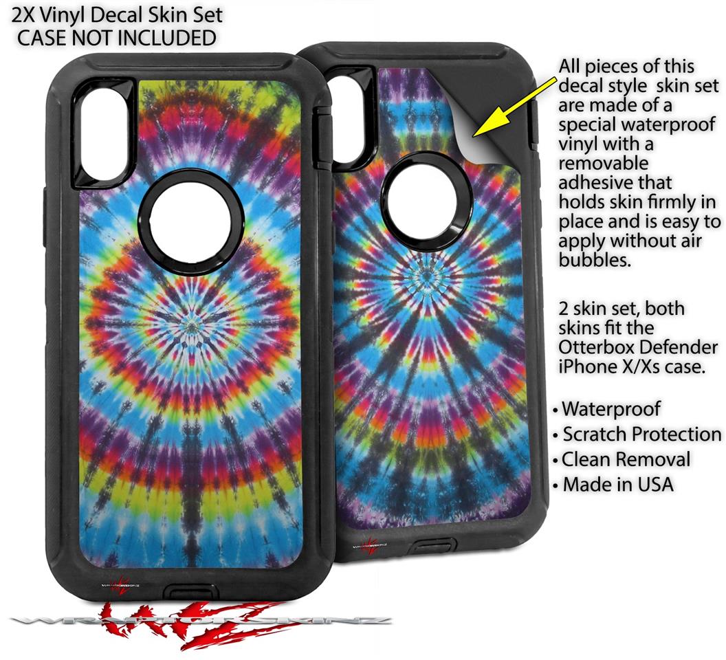 2x Decal style Skin Wrap Set compatible with Otterbox Defender iPhone X and Xs Case - Tie Dye Swirl 100 (CASE NOT INCLUDED)