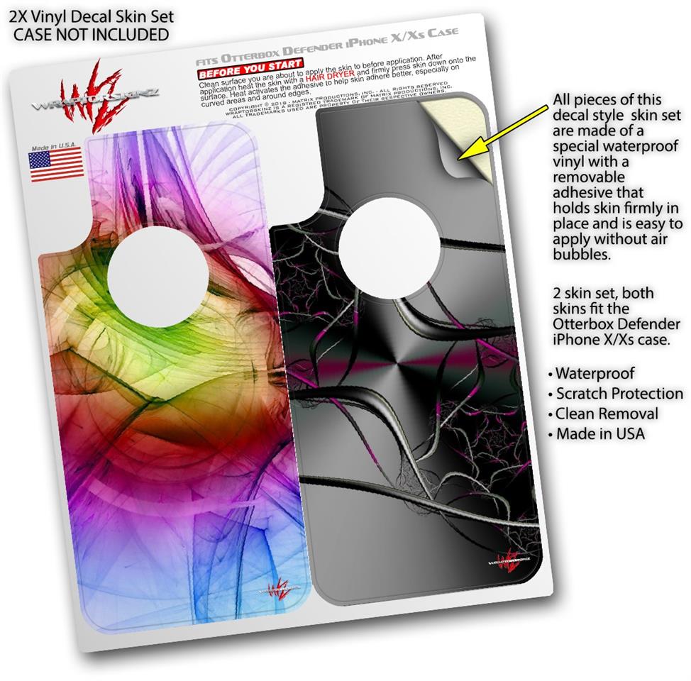 2x Decal style Skin Wrap Set compatible with Otterbox Defender iPhone X and Xs Case - Burst (CASE NOT INCLUDED)