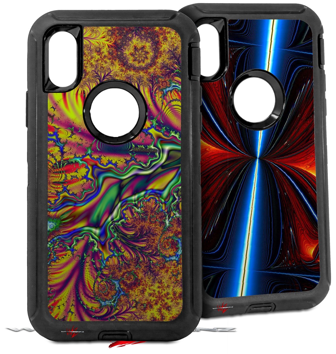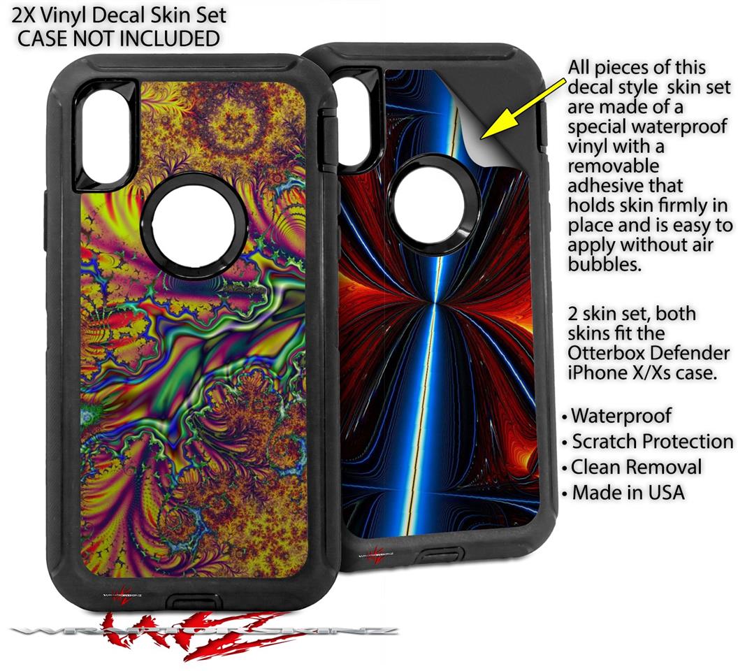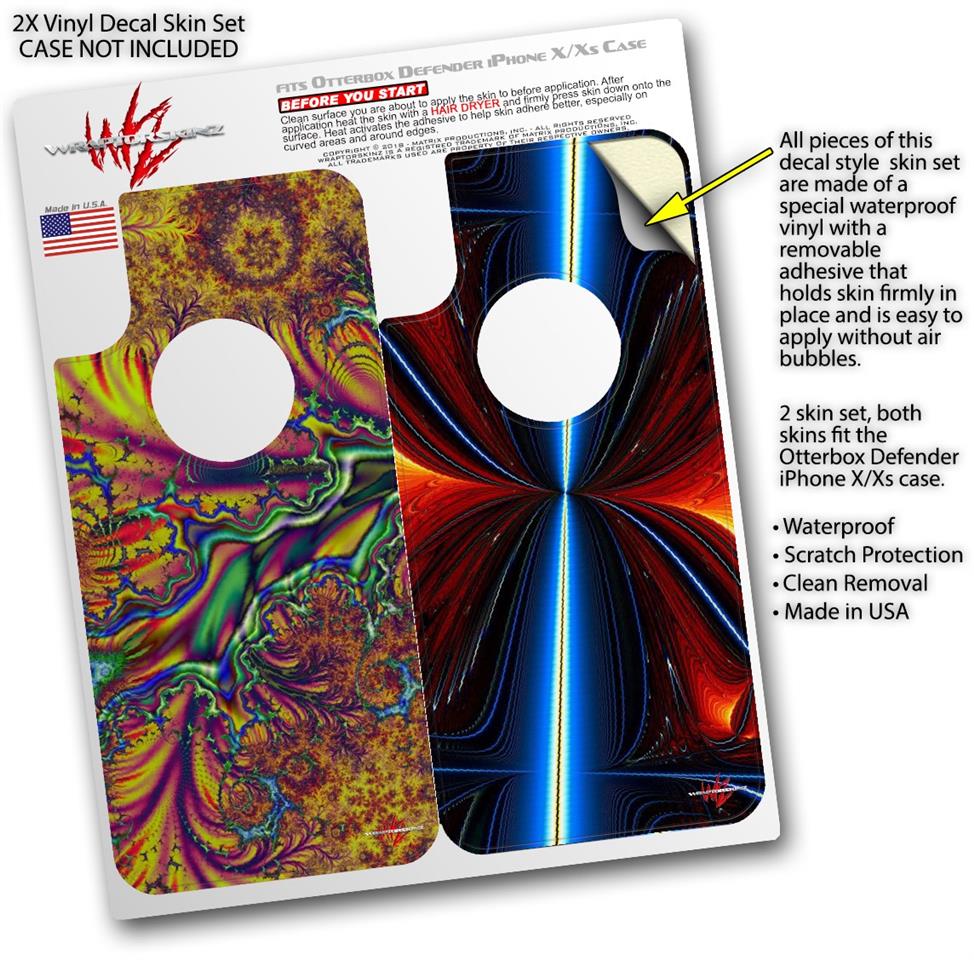 2x Decal style Skin Wrap Set compatible with Otterbox Defender iPhone X and Xs Case - Fire And Water (CASE NOT INCLUDED)