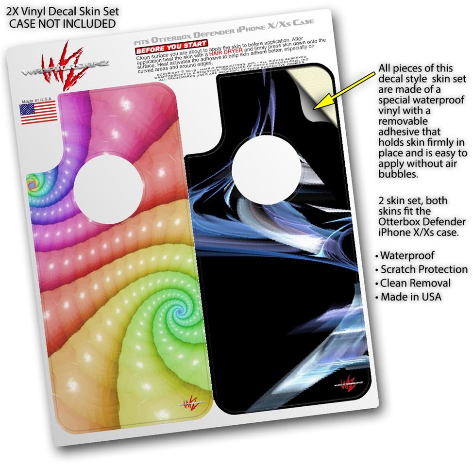 WraptorSkinz® skin wraps compatible with Otterbox Defender iPhone X / Xs Cases are printed using superb photo quality designs and vibrant colors printed with special fade resistant inks that last even in direct sun for years. WraptorSkinz are a composite of two layers of commercial grade materials. The bottom layer is a soft, flexible vinyl with a special removable adhesive that is easily positioned, applied without air bubbles. Next, we print the bottom layer with UV protected, fade resistant inks that deliver superb photo quality designs in vibrant colors. Finally, we bond a professional grade laminate over the entire skin adding a glossy protective finish. This product is not affiliated with or endorsed by Otterbox.