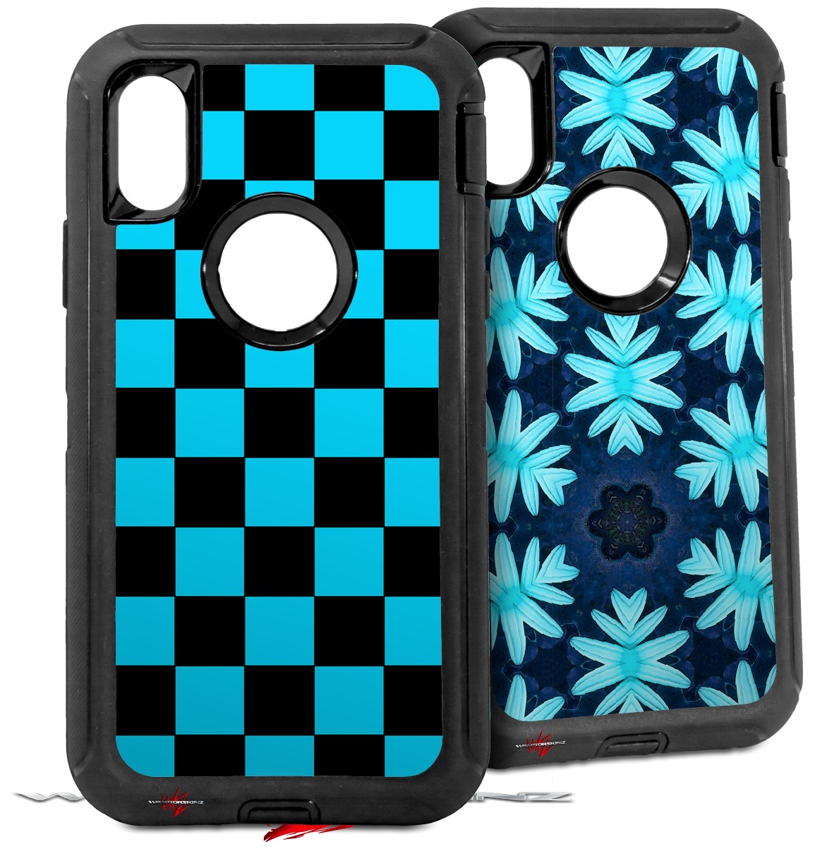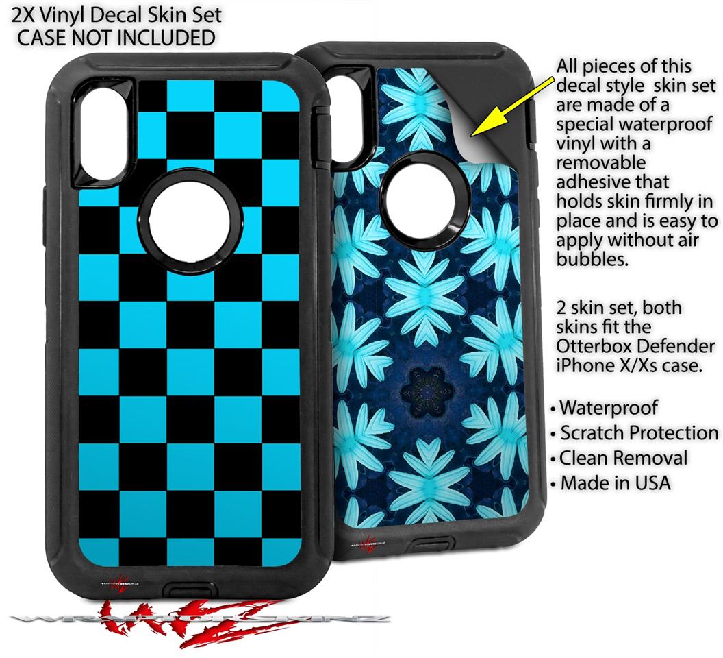2x Decal style Skin Wrap Set compatible with Otterbox Defender iPhone X and Xs Case - Checkers Blue (CASE NOT INCLUDED)