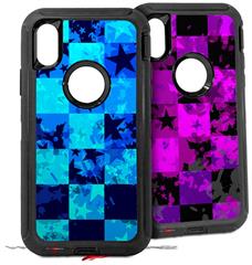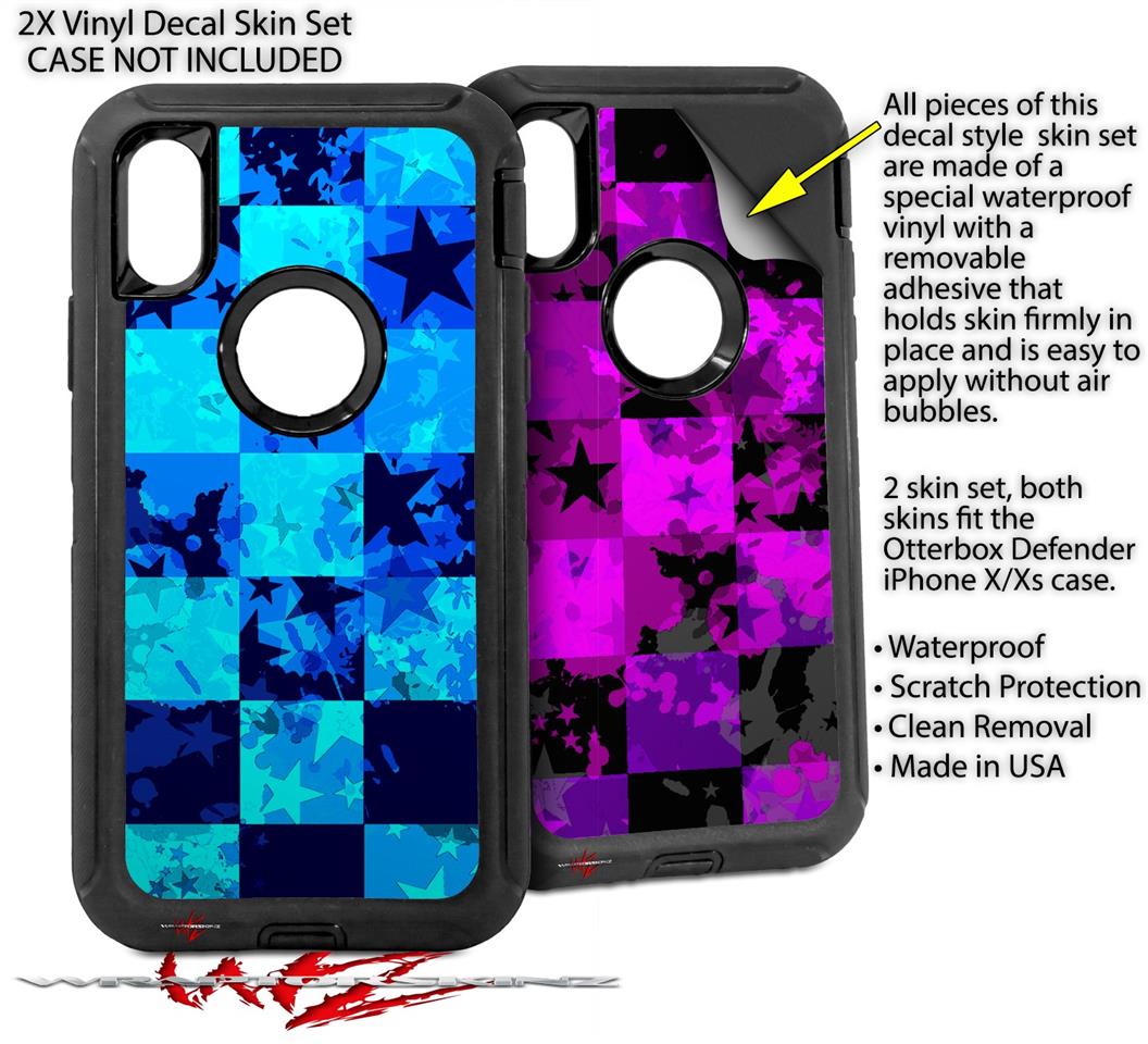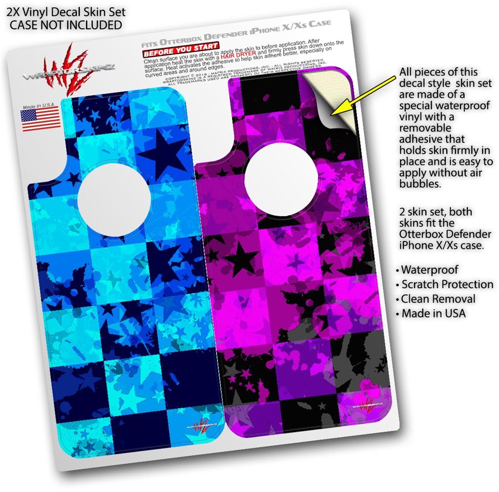 2x Decal style Skin Wrap Set compatible with Otterbox Defender iPhone X and Xs Case - Blue Star Checkers (CASE NOT INCLUDED)