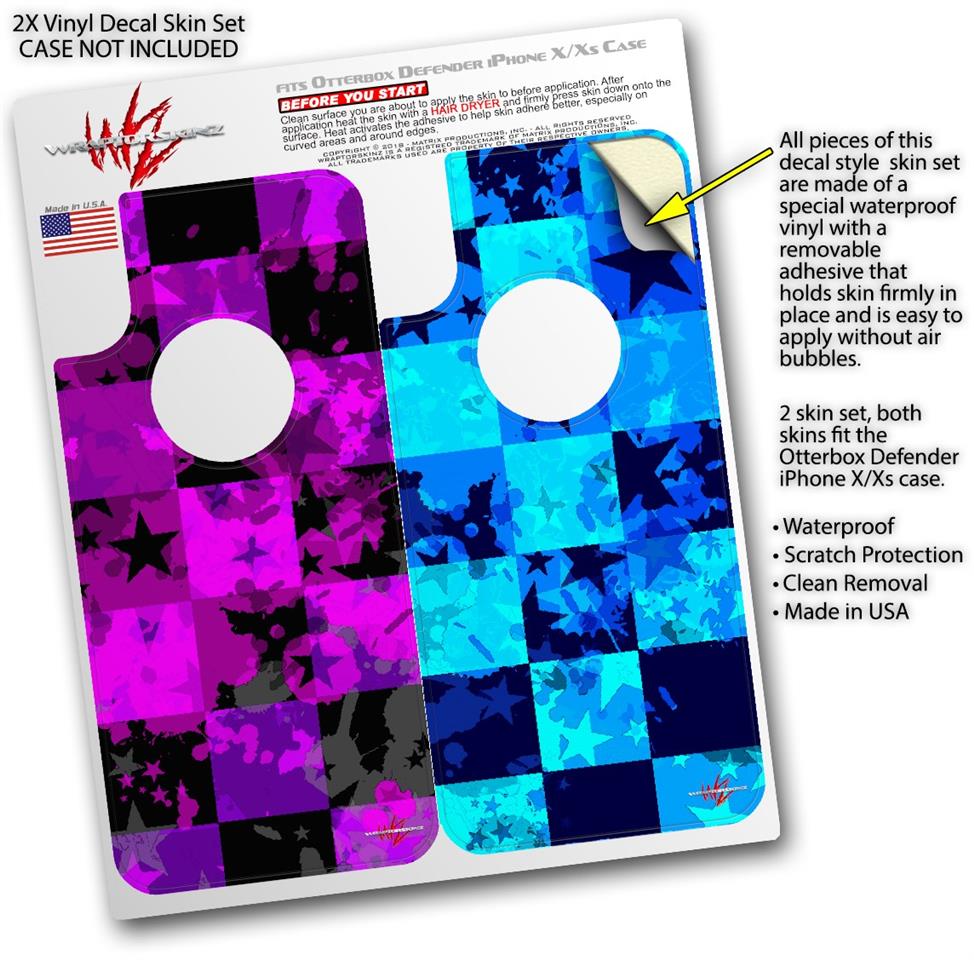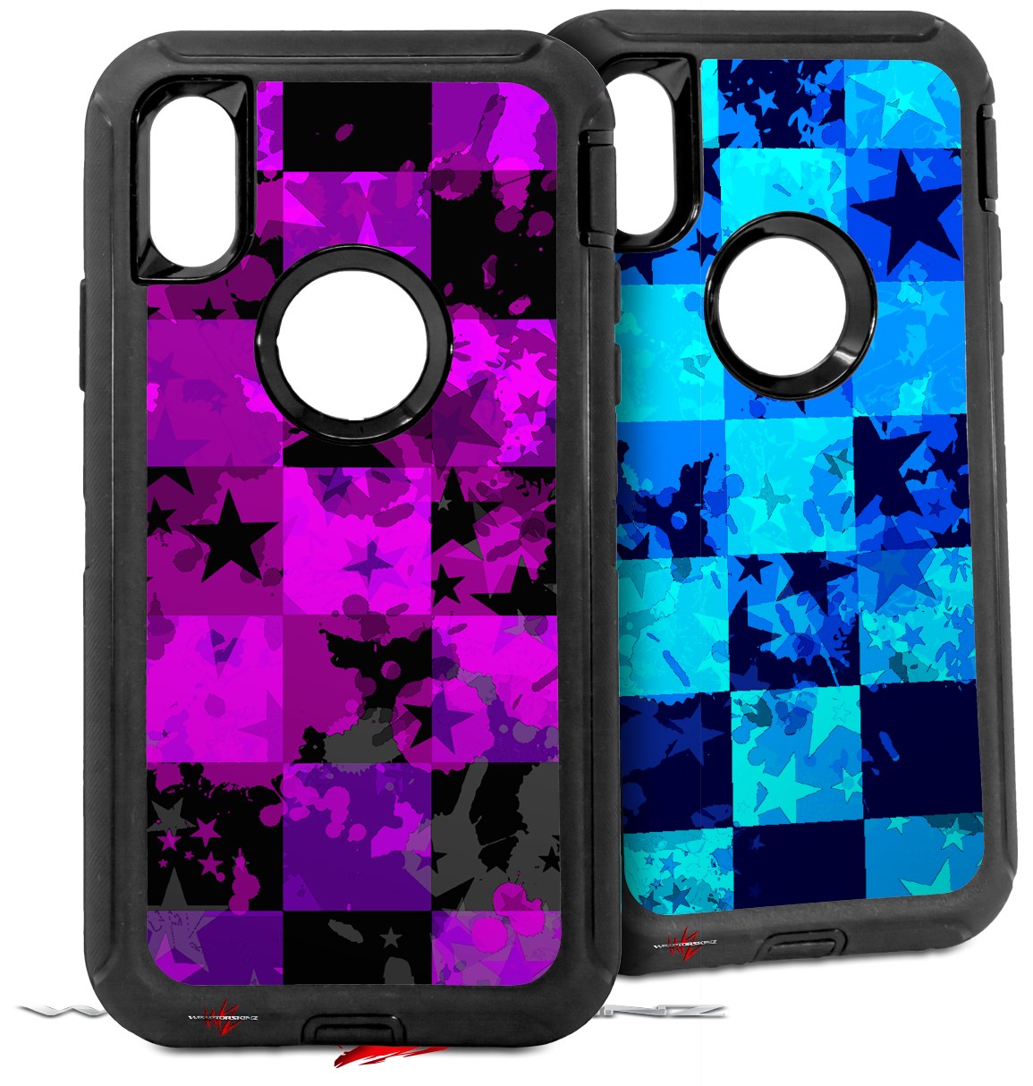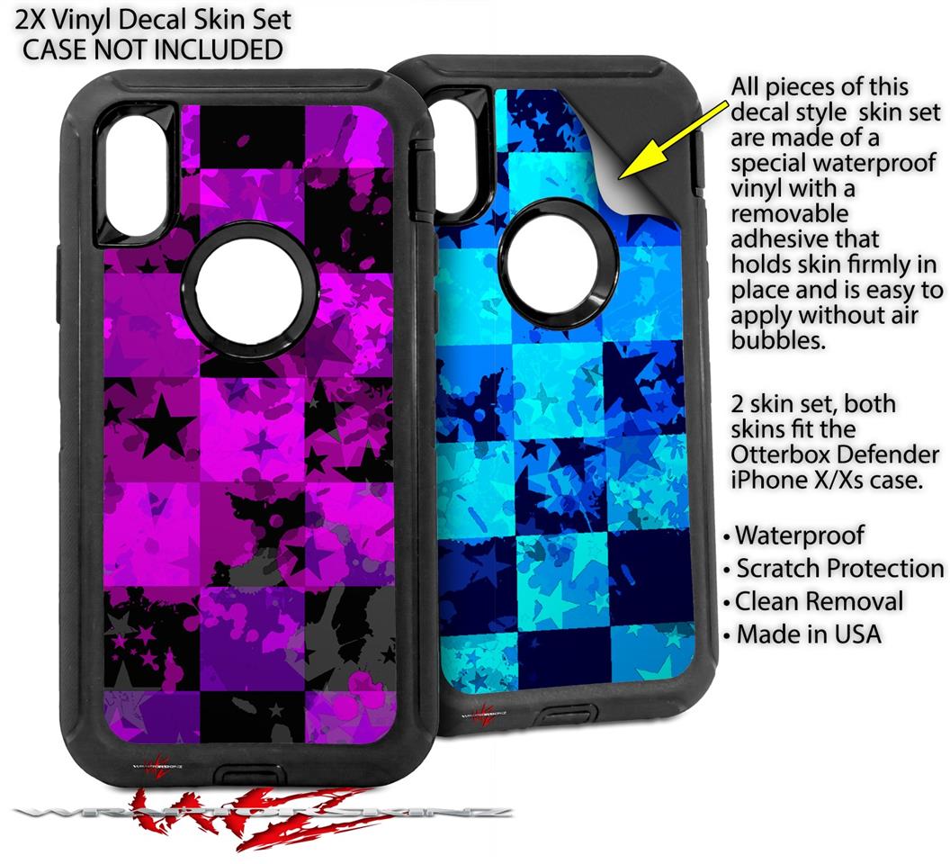 2x Decal style Skin Wrap Set compatible with Otterbox Defender iPhone X and Xs Case - Purple Star Checkerboard (CASE NOT INCLUDED)