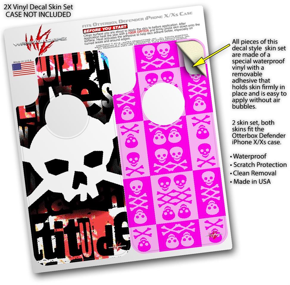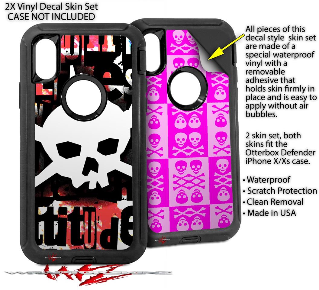 2x Decal style Skin Wrap Set compatible with Otterbox Defender iPhone X and Xs Case - Punk Rock Skull (CASE NOT INCLUDED)