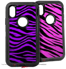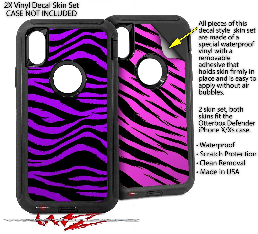 2x Decal style Skin Wrap Set compatible with Otterbox Defender iPhone X and Xs Case - Purple Zebra (CASE NOT INCLUDED)