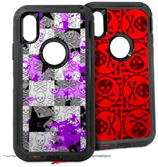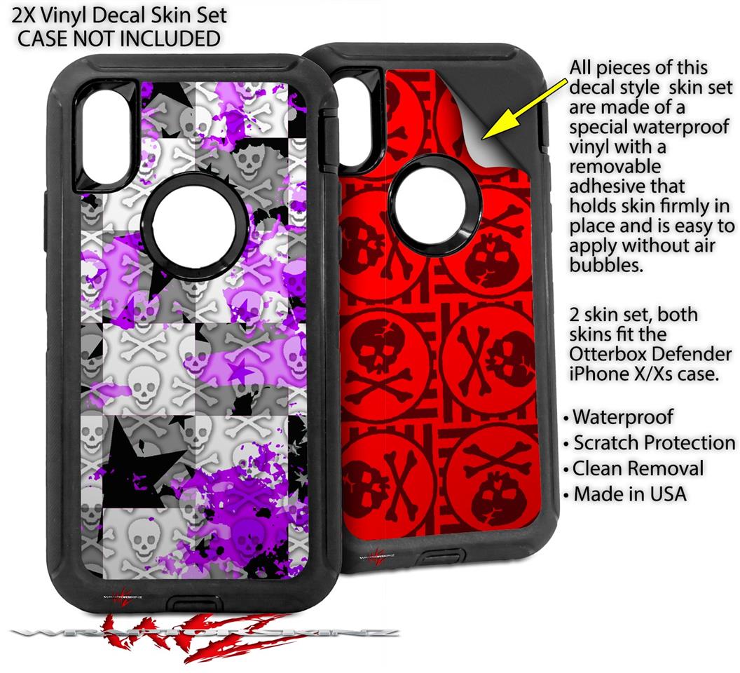 2x Decal style Skin Wrap Set compatible with Otterbox Defender iPhone X and Xs Case - Purple Checker Skull Splatter (CASE NOT INCLUDED)