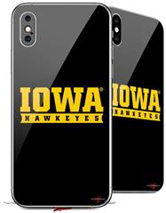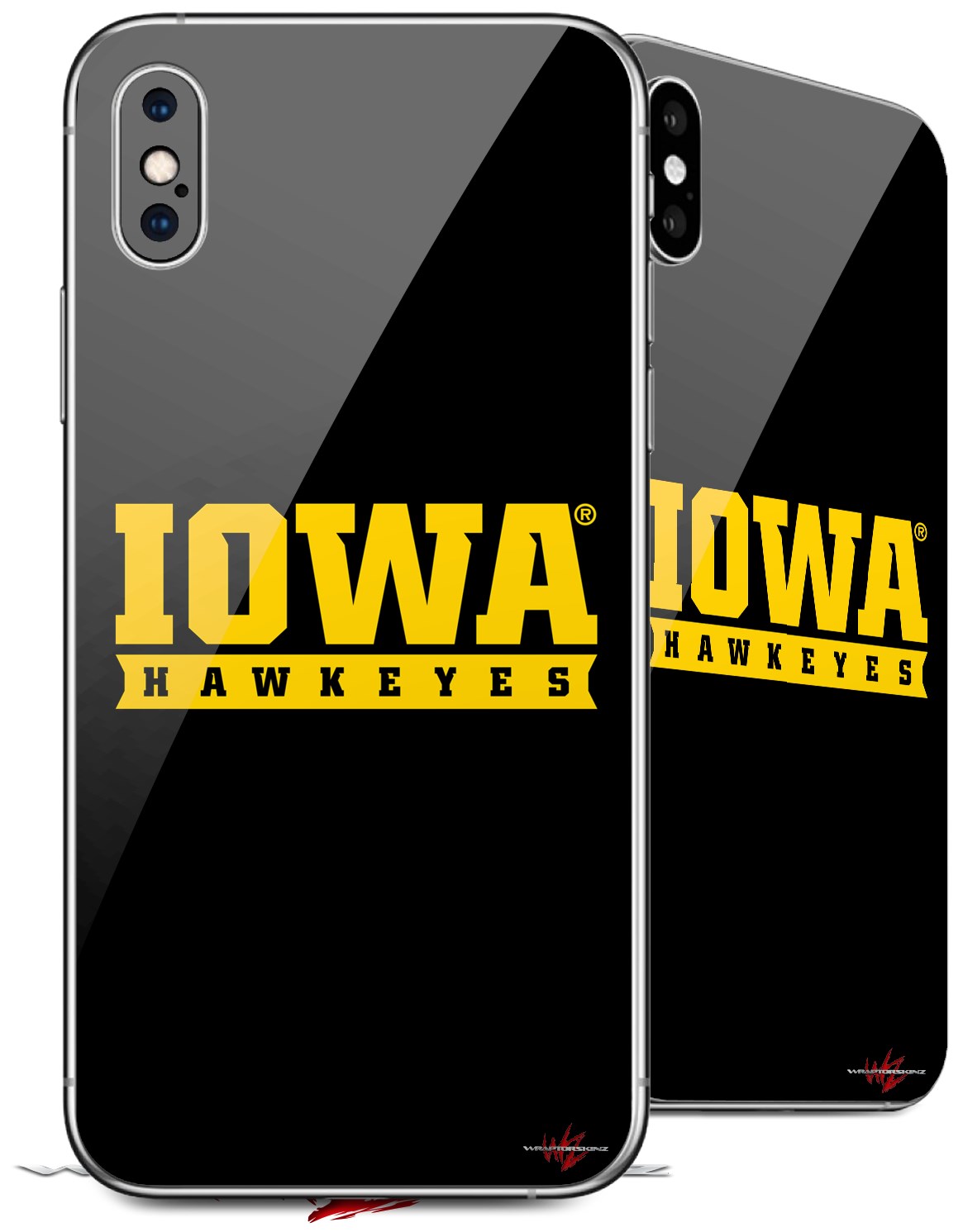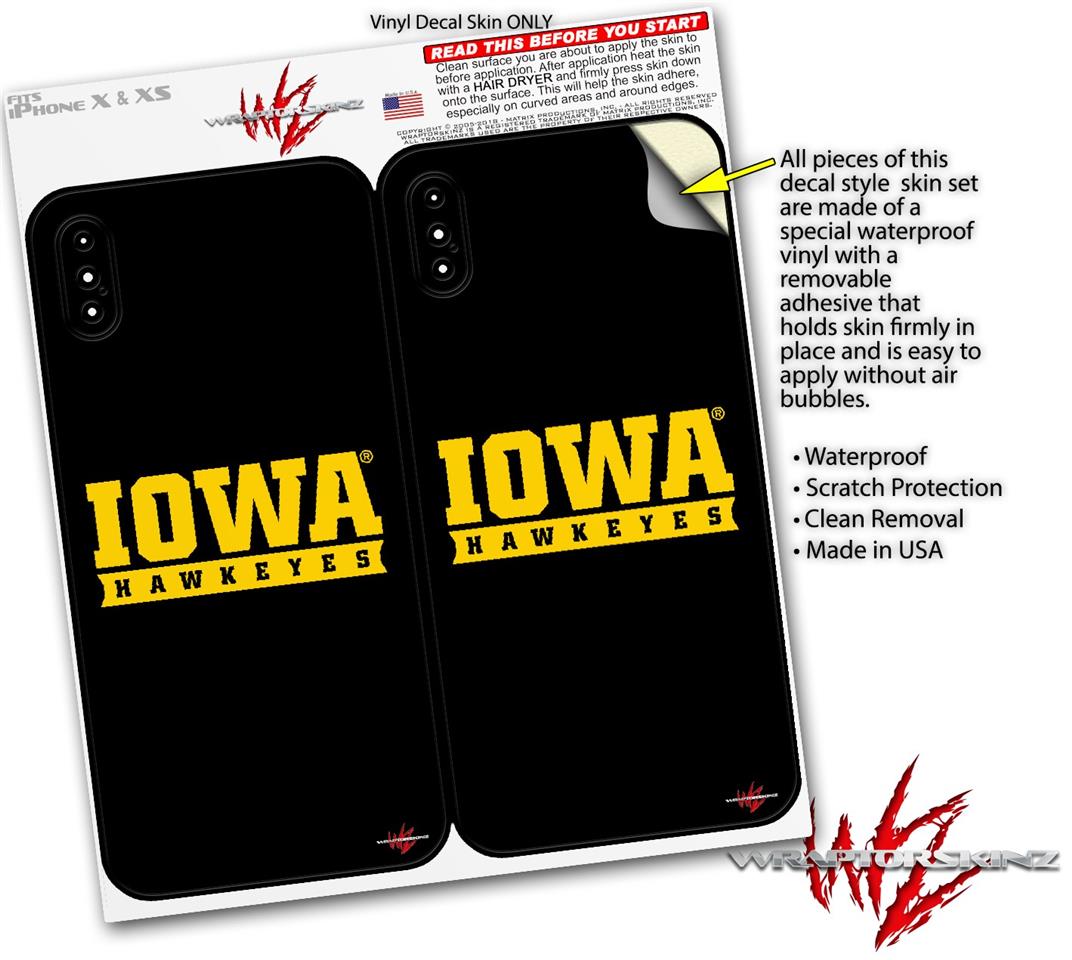 2 Decal style Skin Wraps set compatible with Apple iPhone X and XS Iowa Hawkeyes 03 Black on Gold