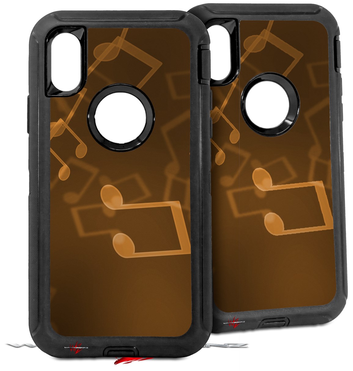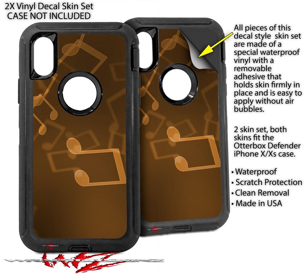 2x Decal style Skin Wrap Set compatible with Otterbox Defender iPhone X and Xs Case - Bokeh Music Orange (CASE NOT INCLUDED)