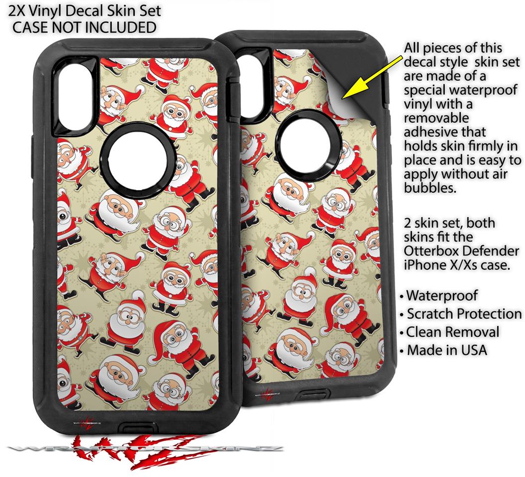 2x Decal style Skin Wrap Set compatible with Otterbox Defender iPhone X and Xs Case - Lots of Santas (CASE NOT INCLUDED)