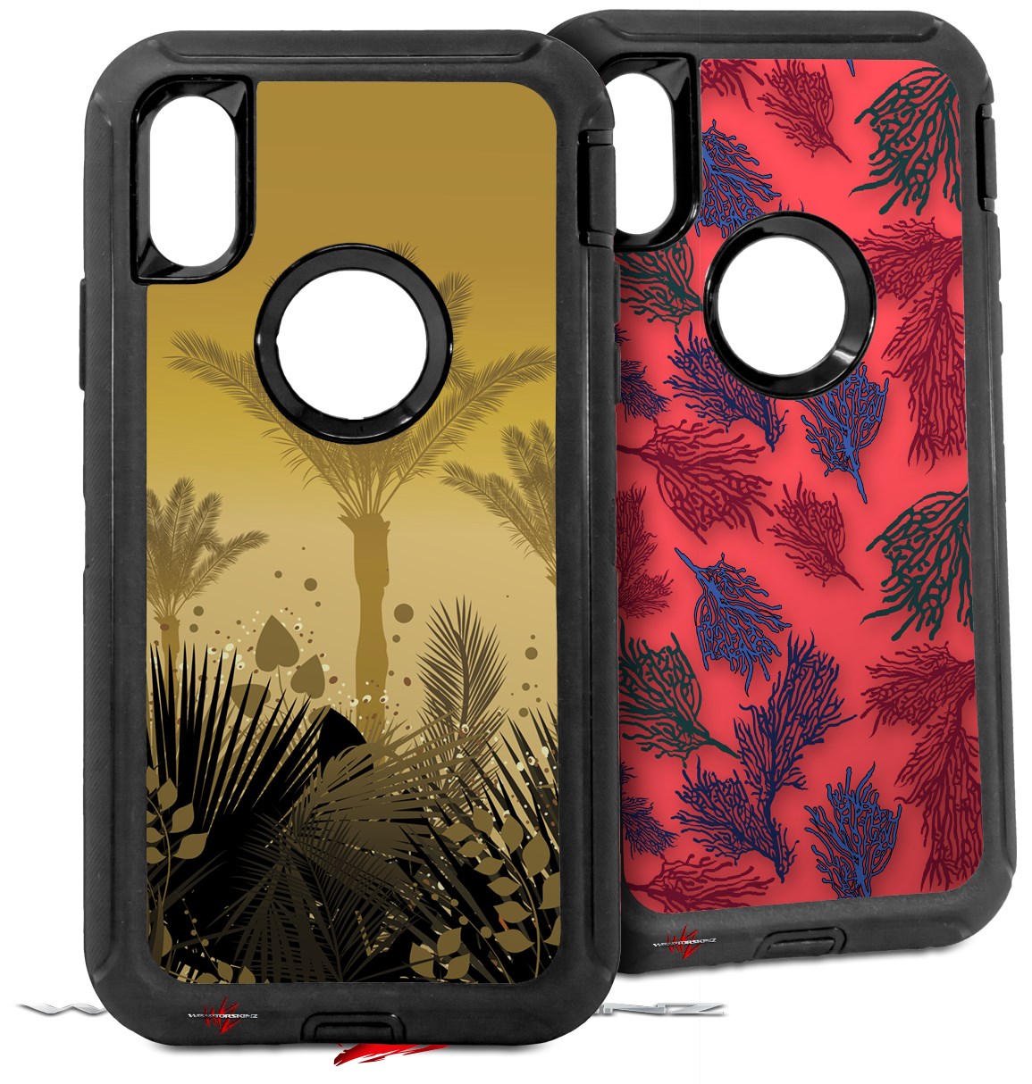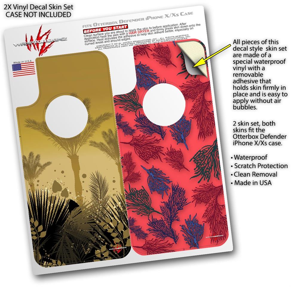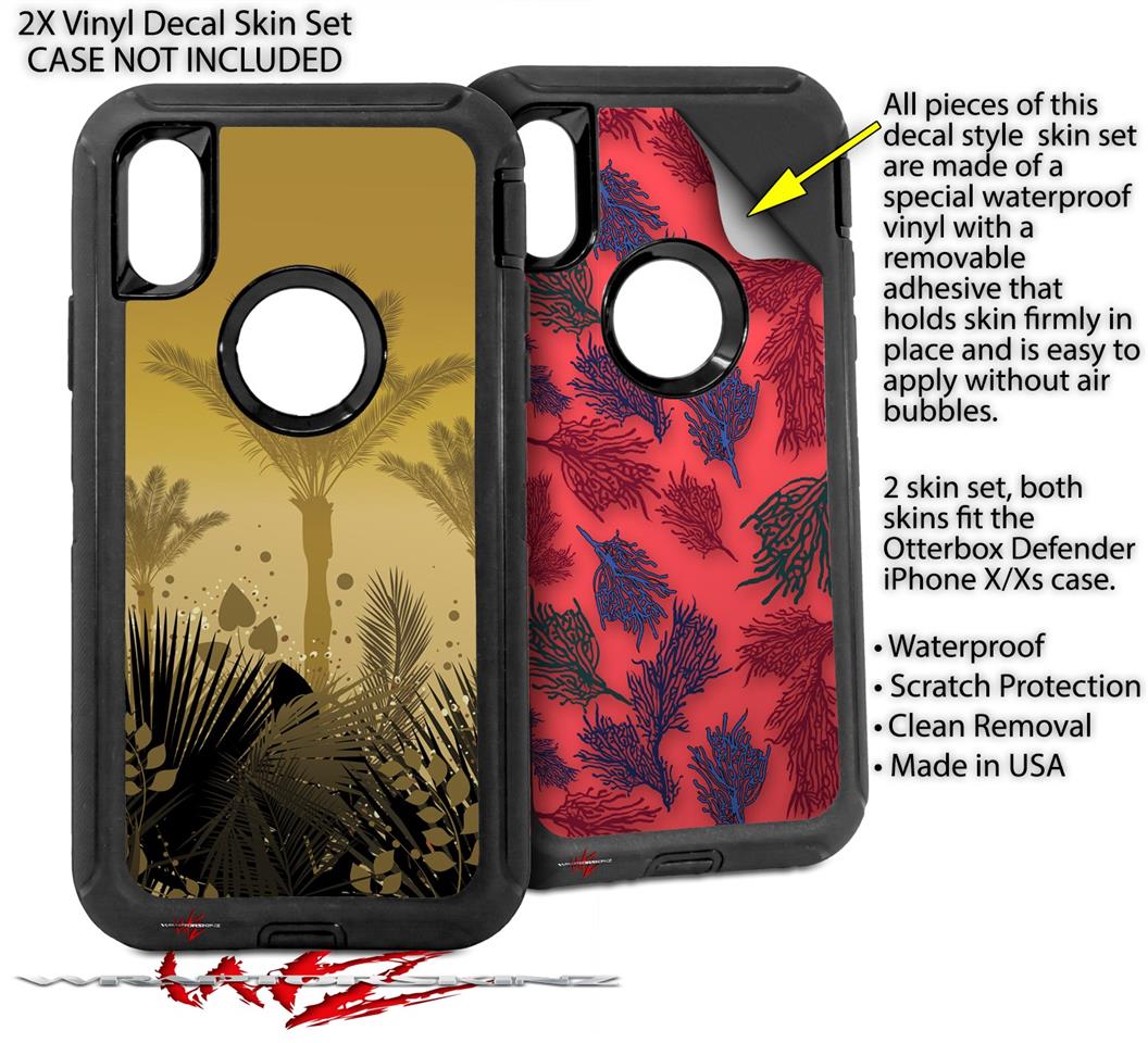 2x Decal style Skin Wrap Set compatible with Otterbox Defender iPhone X and Xs Case - Summer Palm Trees (CASE NOT INCLUDED)