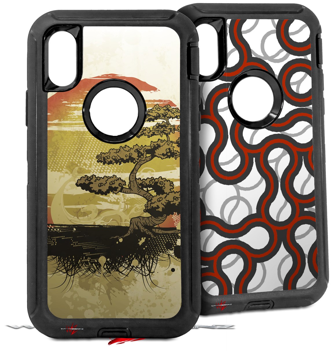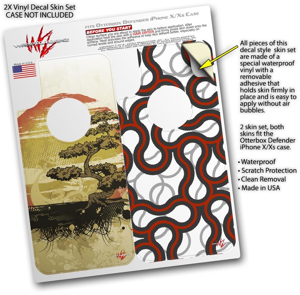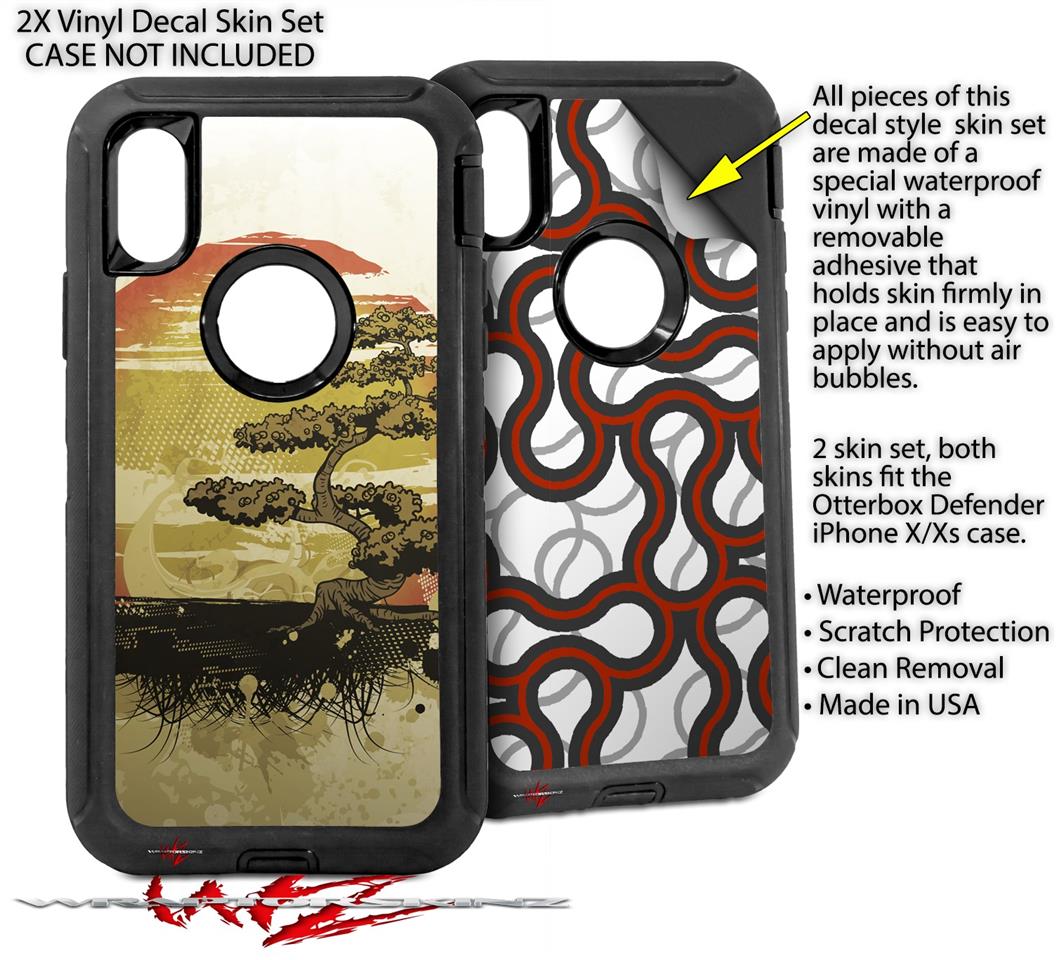 2x Decal style Skin Wrap Set compatible with Otterbox Defender iPhone X and Xs Case - Bonsai Sunset (CASE NOT INCLUDED)