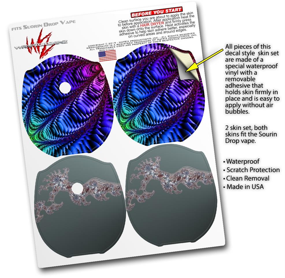 WraptorSkinz® skin wraps compatible with Suorin Drop Vape are printed using superb photo quality designs and vibrant colors printed with special fade resistant inks that last even in direct sun for years. WraptorSkinz are a composite of two layers of commercial grade materials. The bottom layer is a soft, flexible vinyl with a special removable adhesive that is easily positioned, applied without air bubbles. Next, we print the bottom layer with UV protected, fade resistant inks that deliver superb photo quality designs in vibrant colors. Finally, we bond a professional grade laminate over the entire skin adding a glossy protective finish. This product is not affiliated with or endorsed by Suorin.