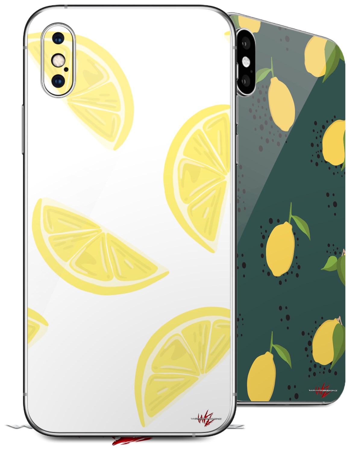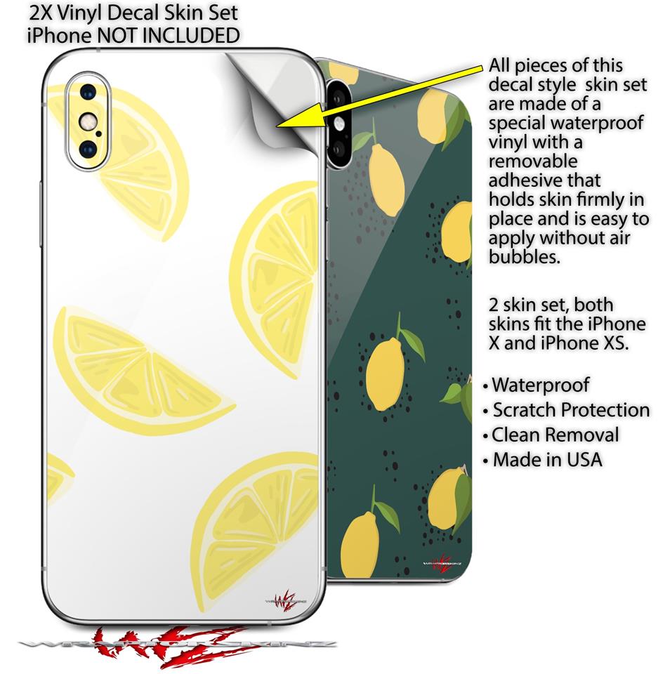 2 Decal style Skin Wraps set compatible with Apple iPhone X and XS Lemons