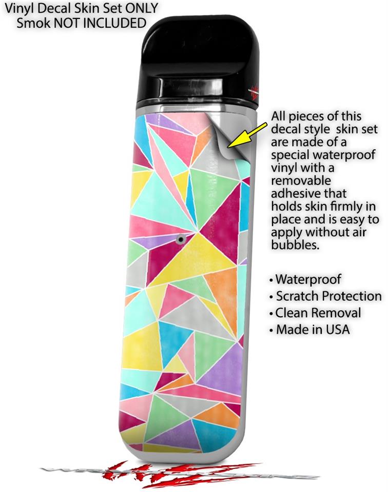 WraptorSkinz® skin wraps are printed using superb photo quality designs and vibrant colors printed with special fade resistant inks that last even in direct sun for years. WraptorSkinz are a composite of two layers of commercial grade materials. The bottom layer is a soft, flexible vinyl with a special removable adhesive that is easily positioned, applied without air bubbles. Next we print the bottom layer with UV protected, fade resistant inks that deliver superb photo quality designs in vibrant colors. Last, we bond a professional grade laminate over the entire skin adding a glossy protective finish. This product is not affiliated with or endorsed by the Smok brand.