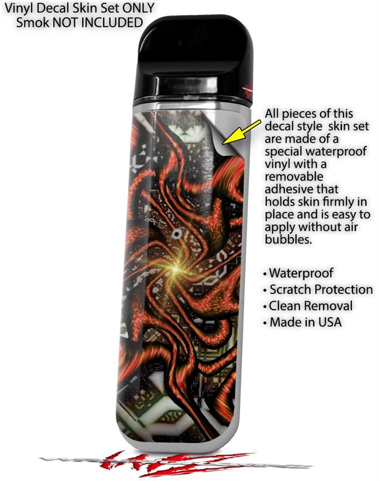 WraptorSkinz® skin wraps are printed using superb photo quality designs and vibrant colors printed with special fade resistant inks that last even in direct sun for years. WraptorSkinz are a composite of two layers of commercial grade materials. The bottom layer is a soft, flexible vinyl with a special removable adhesive that is easily positioned, applied without air bubbles. Next we print the bottom layer with UV protected, fade resistant inks that deliver superb photo quality designs in vibrant colors. Last, we bond a professional grade laminate over the entire skin adding a glossy protective finish. This product is not affiliated with or endorsed by the Smok brand.