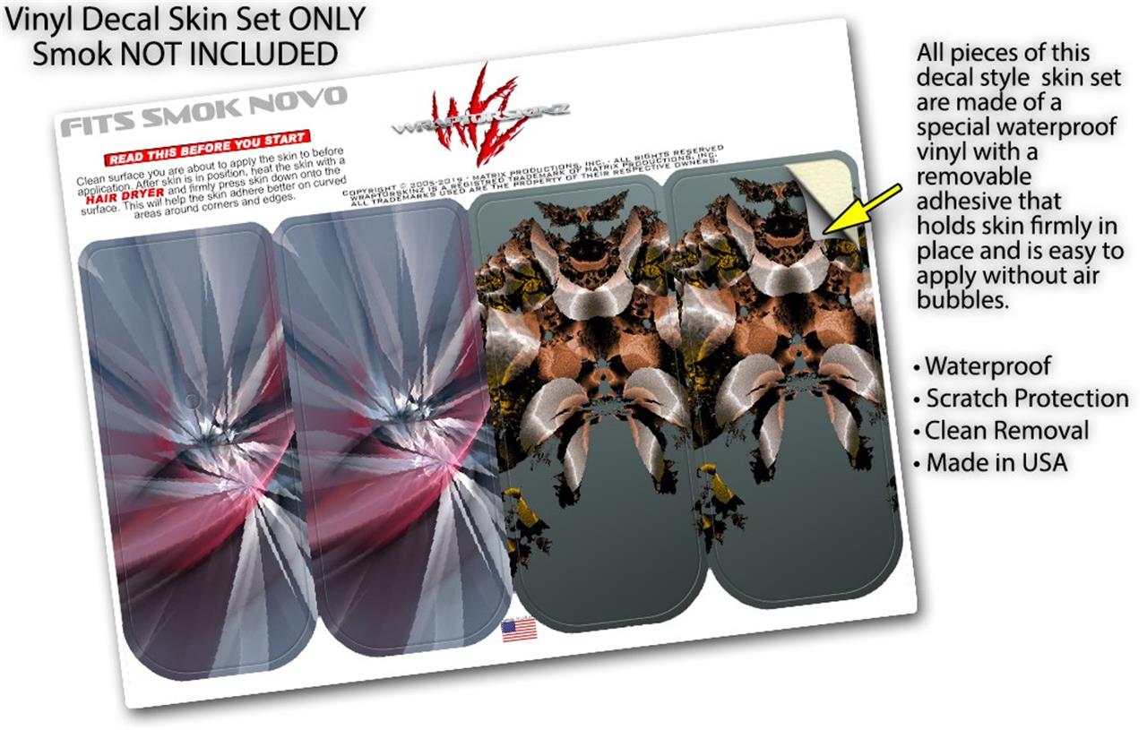 WraptorSkinz® skin wraps are printed using superb photo quality designs and vibrant colors printed with special fade resistant inks that last even in direct sun for years. WraptorSkinz are a composite of two layers of commercial grade materials. The bottom layer is a soft, flexible vinyl with a special removable adhesive that is easily positioned, applied without air bubbles. Next we print the bottom layer with UV protected, fade resistant inks that deliver superb photo quality designs in vibrant colors. Last, we bond a professional grade laminate over the entire skin adding a glossy protective finish. This product is not affiliated with or endorsed by the Smok brand.