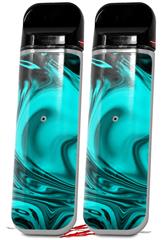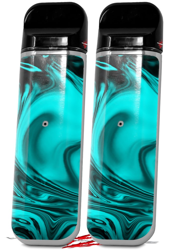 Skin Decal Wrap 2 Pack for Smok Novo v1 Liquid Metal Chrome Neon Teal VAPE NOT INCLUDED