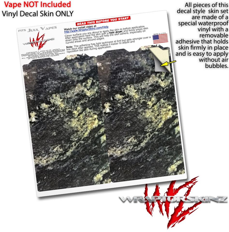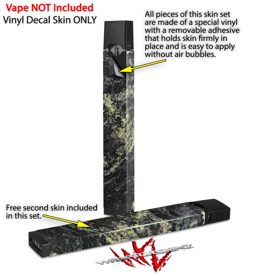 Skin Decal Wrap 2 Pack compatible with Juul Vapes Marble Granite 03 Black JUUL NOT INCLUDED