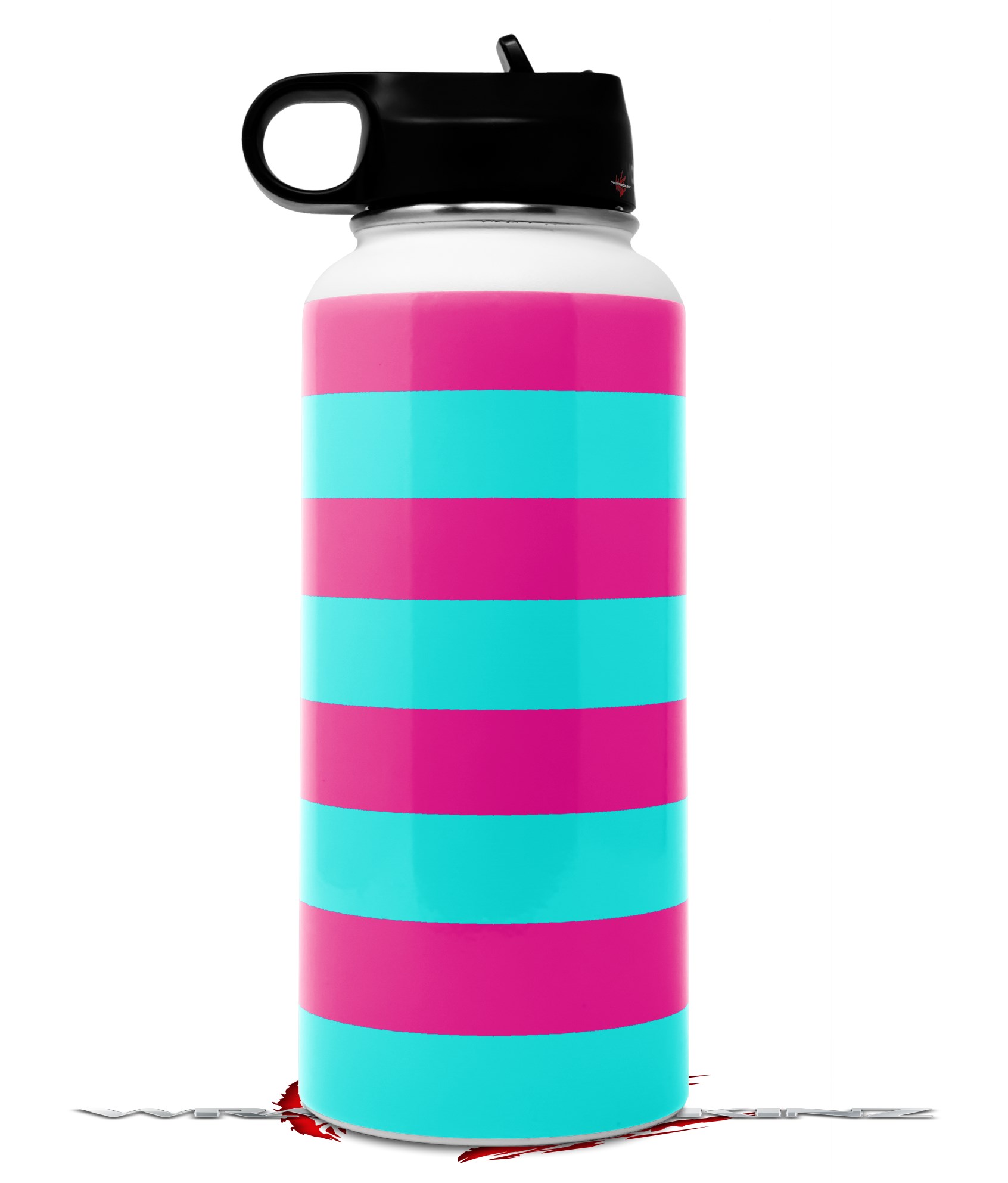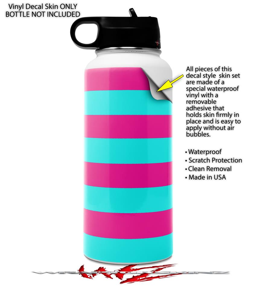 Skin Wrap Decal compatible with Hydro Flask Wide Mouth Bottle 32oz Psycho Stripes Neon Teal and Hot Pink (BOTTLE NOT INCLUDED)