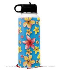 Skin Wrap Decal compatible with Hydro Flask Wide Mouth Bottle 32oz Beach Flowers Blue Medium (BOTTLE NOT INCLUDED)