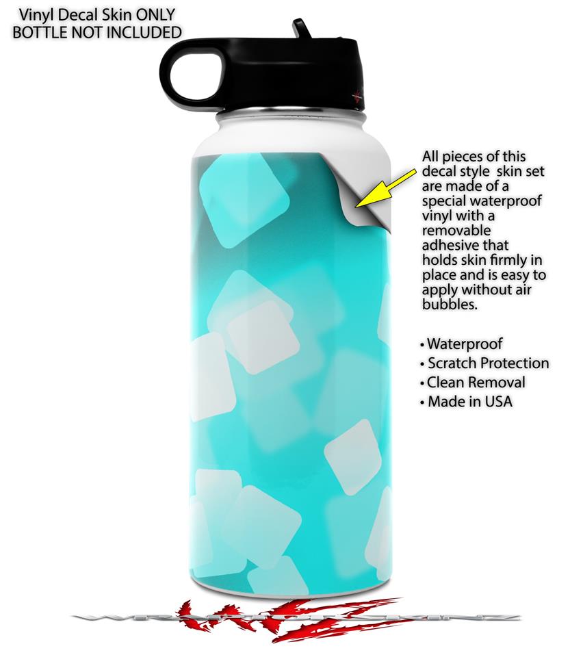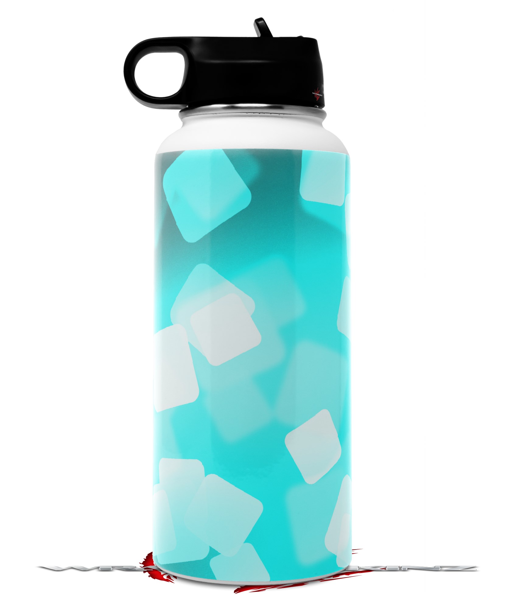 Skin Wrap Decal compatible with Hydro Flask Wide Mouth Bottle 32oz Bokeh Squared Neon Teal (BOTTLE NOT INCLUDED)