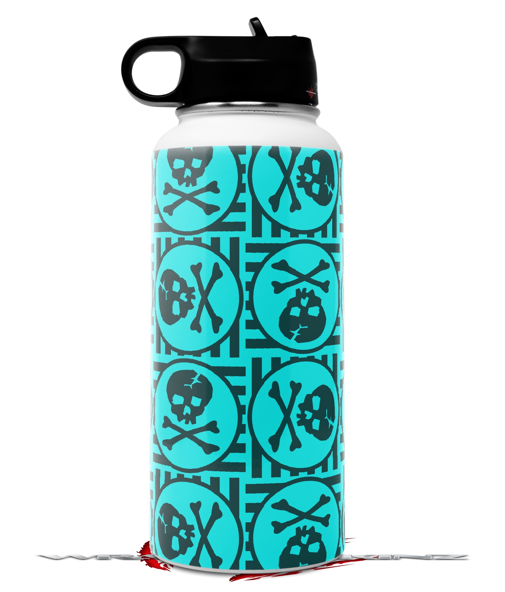 Skin Wrap Decal compatible with Hydro Flask Wide Mouth Bottle 32oz Skull Patch Pattern Blue (BOTTLE NOT INCLUDED)