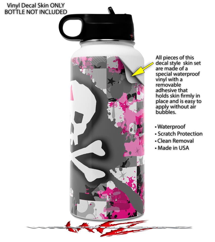 Skin Wrap Decal compatible with Hydro Flask Wide Mouth Bottle 32oz Girly Pink Bow Skull (BOTTLE NOT INCLUDED)