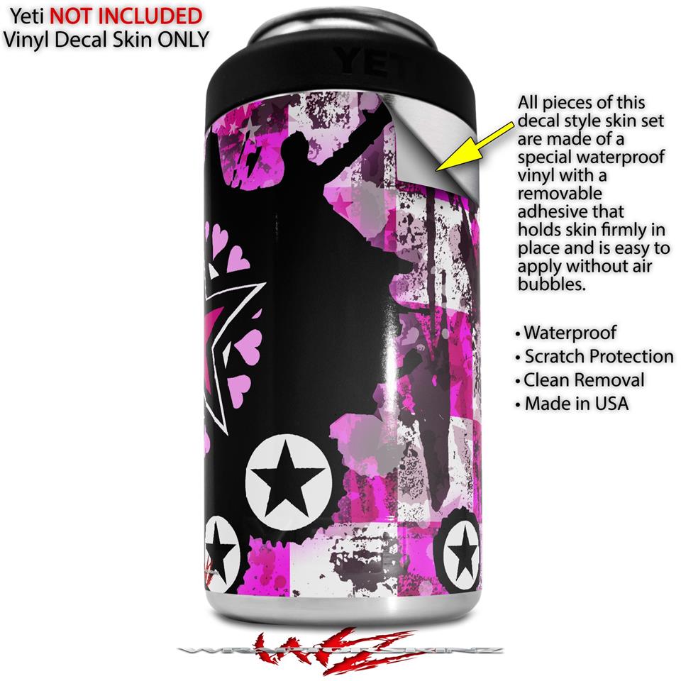 WraptoSkinz skin wraps for Yeti rambler Colster Can Insulator. Can wraps are printed using superb photo quality designs and vibrant colors printed with special fade resistant inks that last even in direct sun for years. WraptorSkinz are a composite of two layers of commercial grade materials. The bottom layer is a soft, flexible vinyl with a special removable adhesive that is easily positioned, applied without air bubbles. Next we print the bottom layer with UV protected, fade resistant inks that deliver superb photo quality designs in vibrant colors. Finally we bond a professional grade laminate over the entire skin adding a glossy protective finish.
