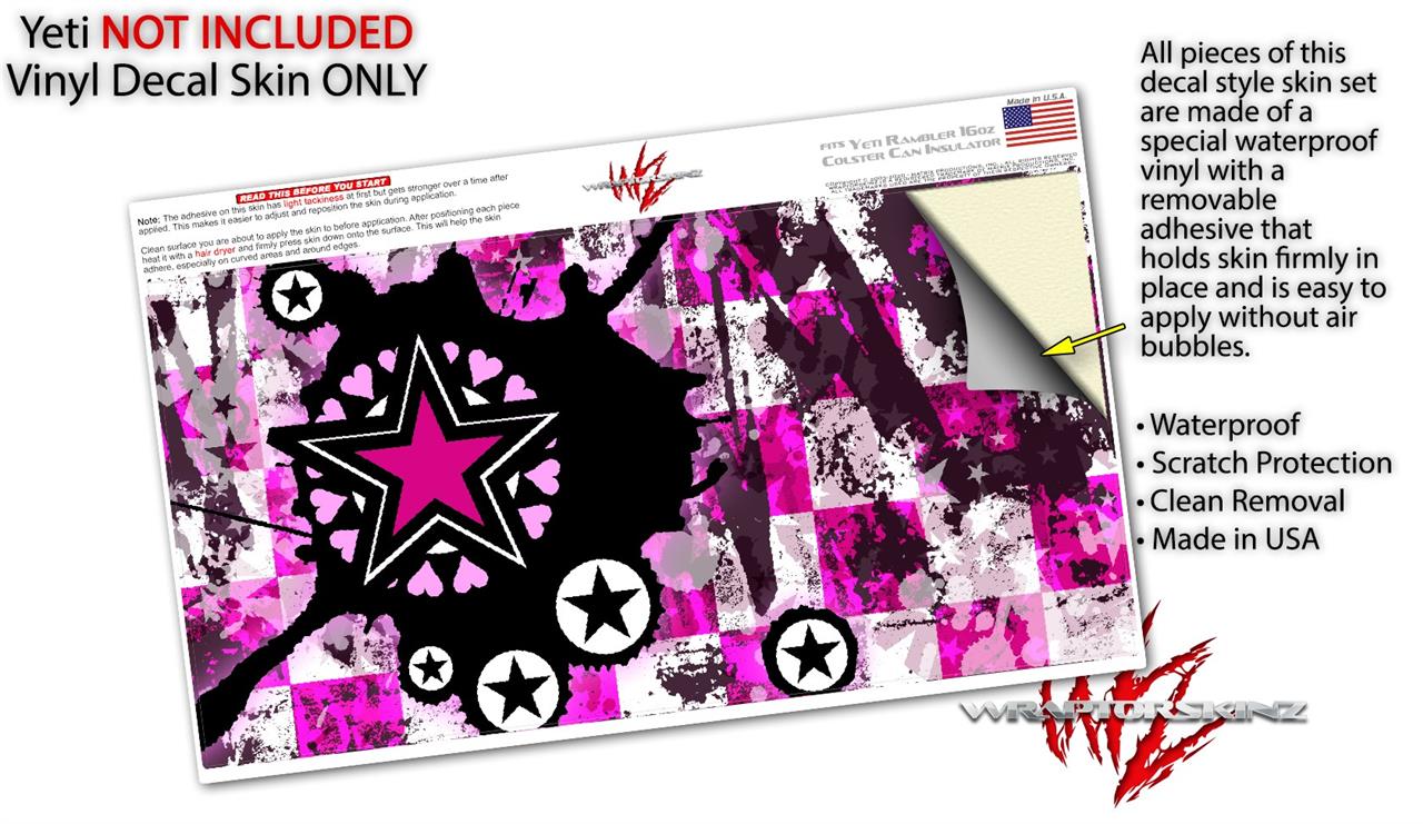 WraptorSkinz Skin Decal Wrap compatible with Yeti 16oz Tall Colster Can Cooler Insulator Pink Star Splatter (COOLER NOT INCLUDED)