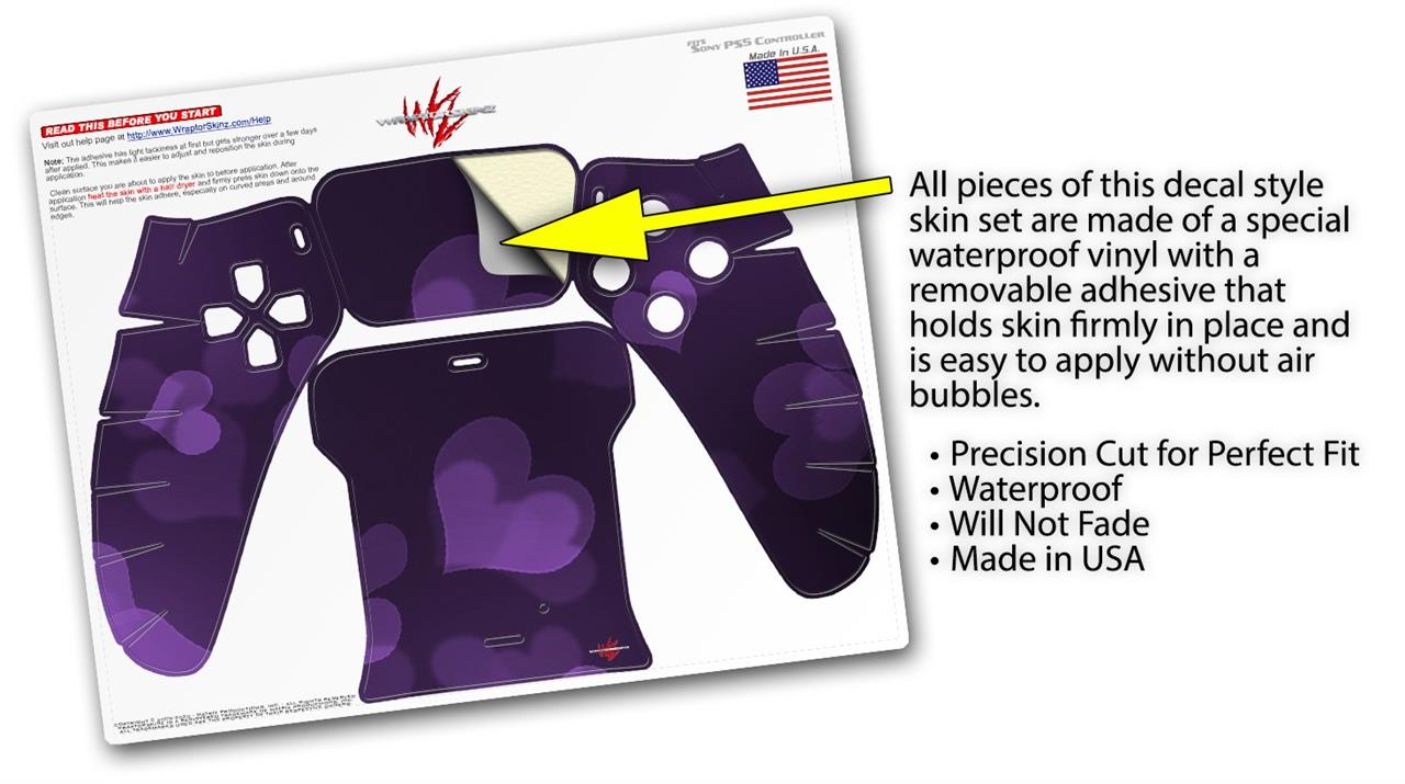 WraptorSkinz Skin Wrap compatible with the Sony PS5 DualSense Controller Bokeh Hearts Purple (CONTROLLER NOT INCLUDED)