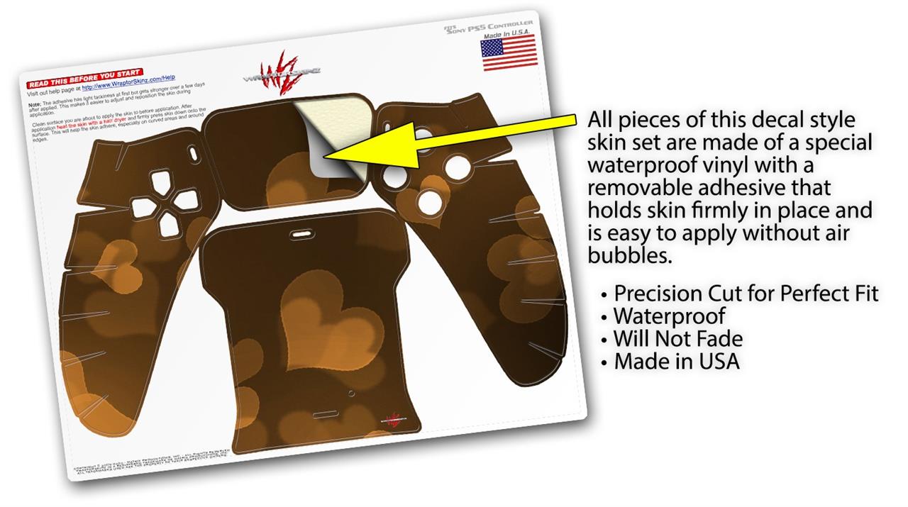 WraptorSkinz Skin Wrap compatible with the Sony PS5 DualSense Controller Bokeh Hearts Orange (CONTROLLER NOT INCLUDED)
