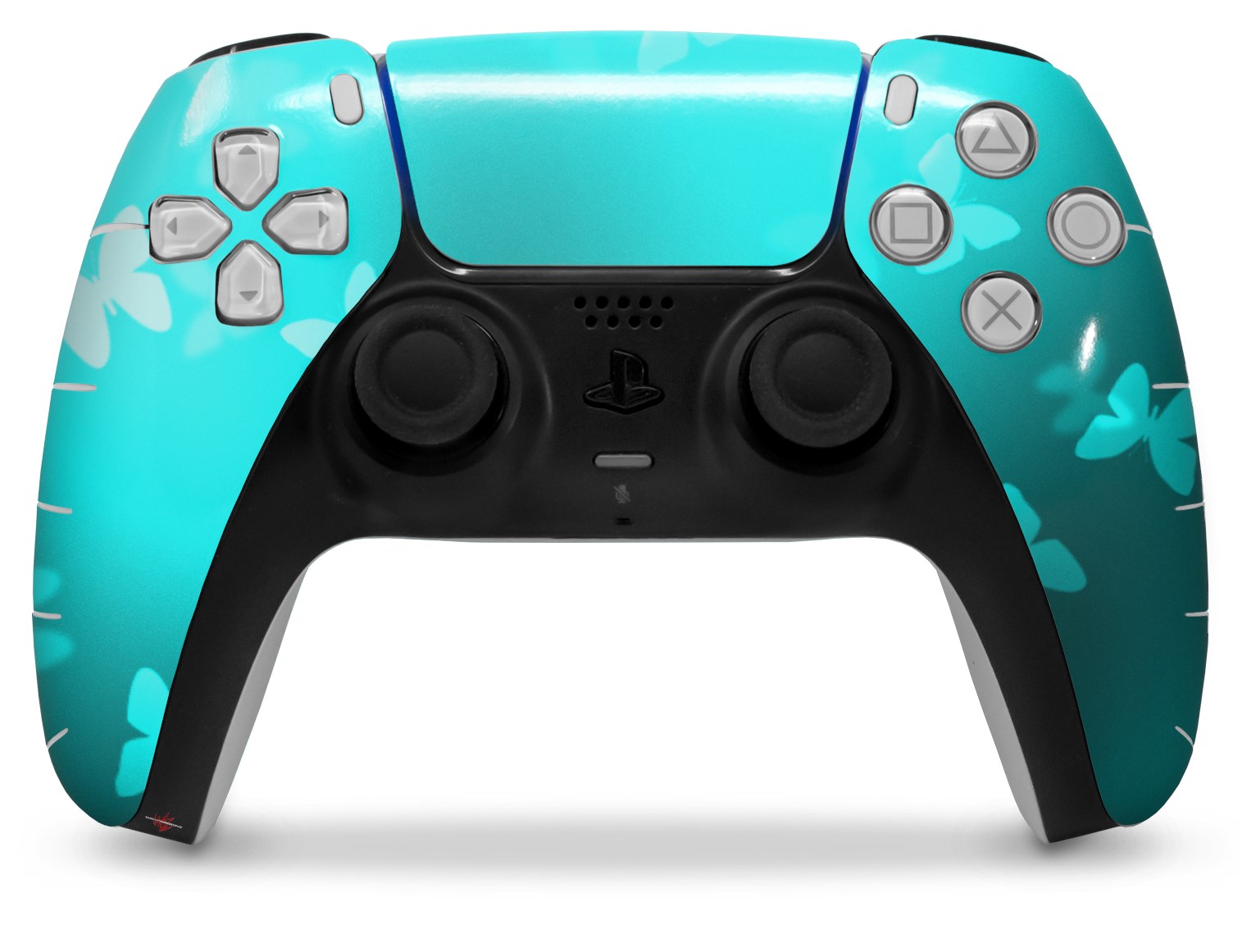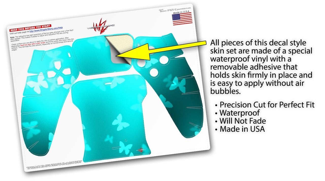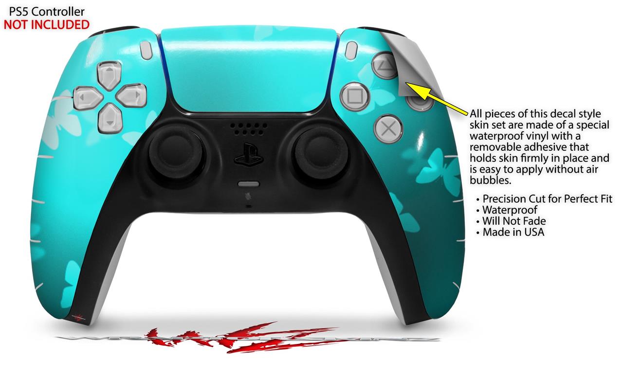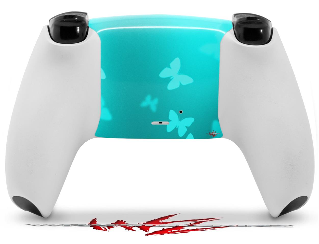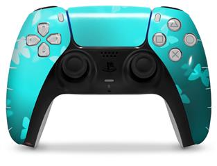WraptorSkinz Skin Wrap compatible with the Sony PS5 DualSense Controller Bokeh Butterflies Neon Teal (CONTROLLER NOT INCLUDED)