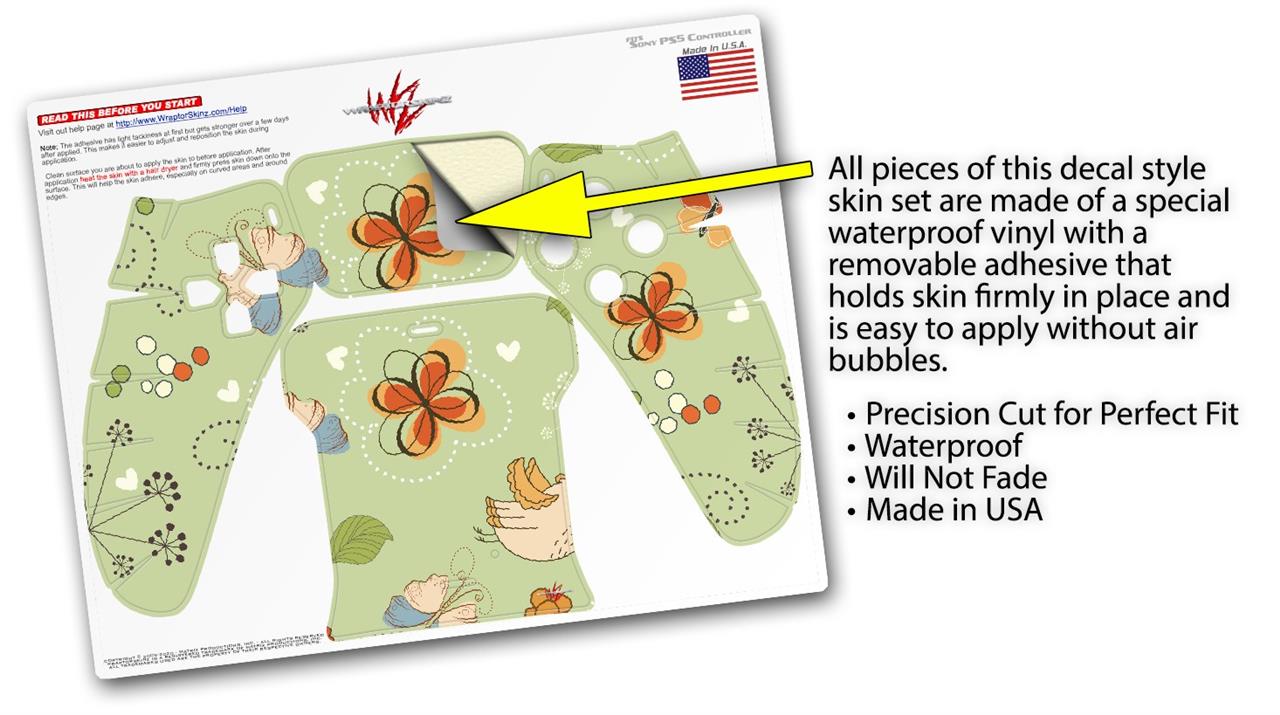 WraptorSkinz Skin Wrap compatible with the Sony PS5 DualSense Controller Birds Butterflies and Flowers (CONTROLLER NOT INCLUDED)