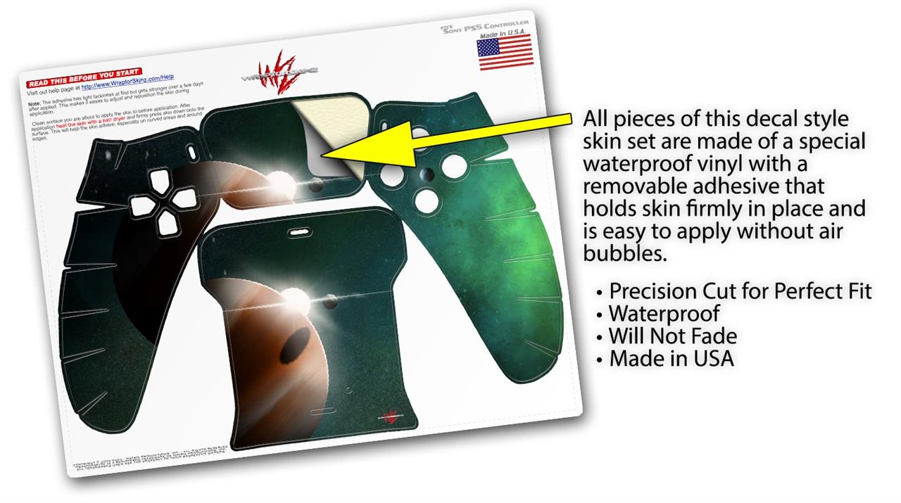 WraptorSkinz® skin wraps for the Sony Playstation 5 controller are printed using superb photo quality designs and vibrant colors printed with special fade resistant inks that last even in direct sun for years. WraptorSkinz are a composite of two layers of commercial grade materials. The bottom layer is a soft, flexible vinyl with a special removable adhesive that is easily positioned, applied without air bubbles. Next we print the bottom layer with UV protected, fade resistant inks that deliver superb photo quality designs in vibrant colors. Last, we bond a professional grade laminate over the entire skin adding a glossy protective finish. This product is not affiliated with or endorsed by Sony or the Playstation brand.